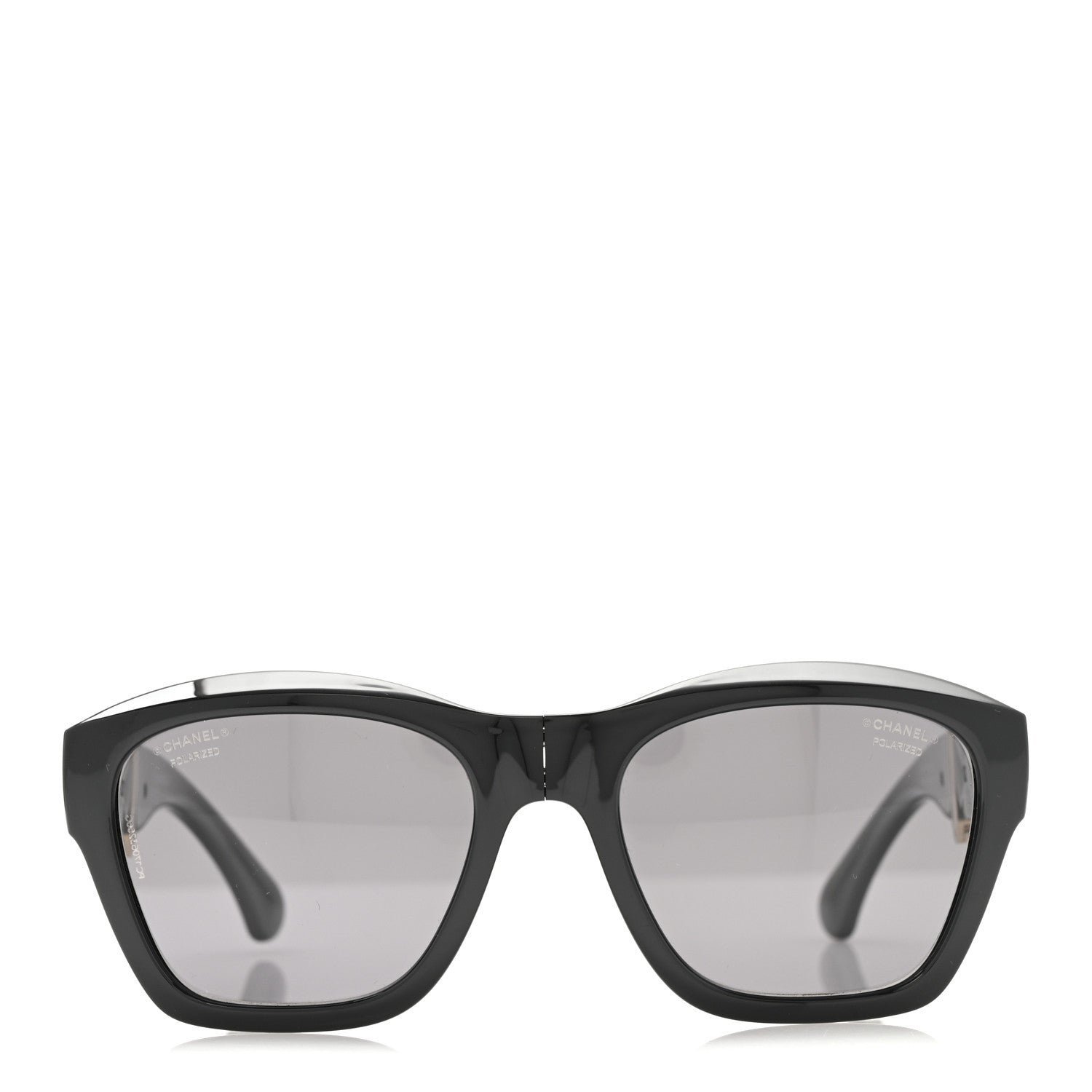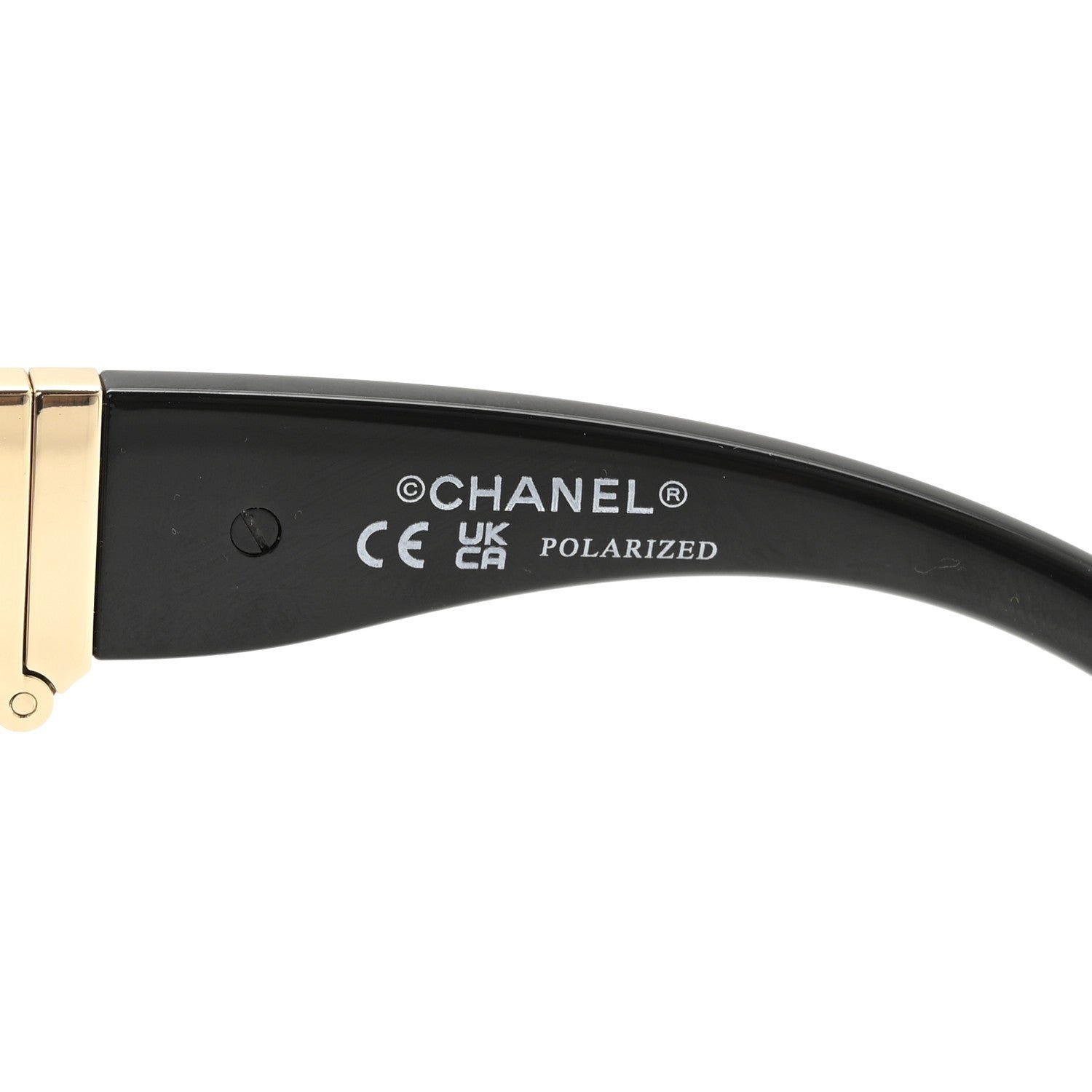 This is an authentic pair of CHANEL Acetate Crystal Polarized Square Folding Sunglasses 71692 in Black. These stunning crystal embellished sunglasses feature a black frame, polarized gradient grey lenses, diamond quilting on the arms, and gold hardware.