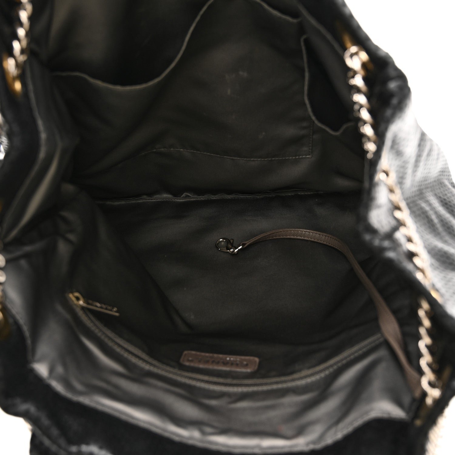 Designed for maximum functionality, this tote is highly spacious and ideal for daily or travel use. It features tightly linked silver or gold-tone chain shoulder straps with comfortable leather shoulder pads for versatile carry. The open-top or magnetic-closure bag reveals a silver satin or unlined burgundy leather interior. It is frequently equipped with a removable leather accessory pouch, adding an extra layer of organization for smaller essentials.
