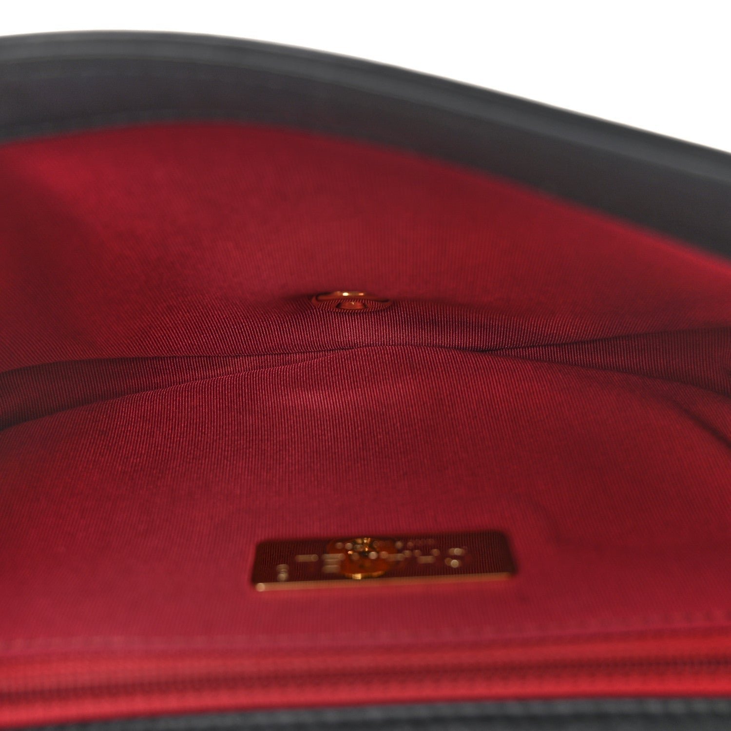 Designed for seamless transition from day to evening, the bag features the iconic gold-tone interlocking CC turn-lock closure on the front flap. It is equipped with an interwoven gold chain and leather shoulder strap, which can often be adjusted or doubled for both shoulder and crossbody wear. The bag opens to a vibrant burgundy or red fabric interior a nod to the linings of Gabrielle Chanel’s original designs and includes a functional zipper pocket and slip compartments for organization. Finished with a “smile” pocket on the back, it remains a practical yet sophisticated staple for any wardrobe.