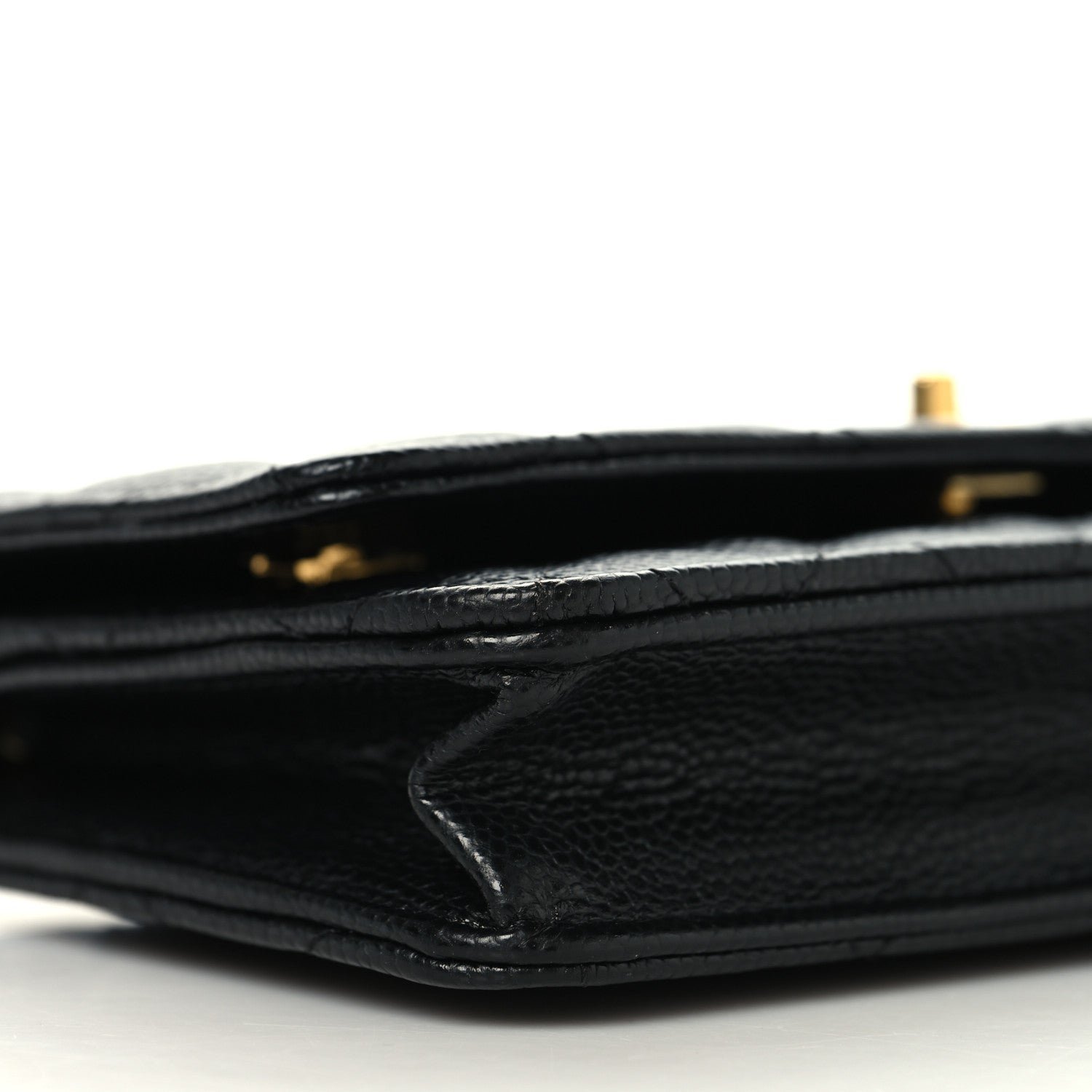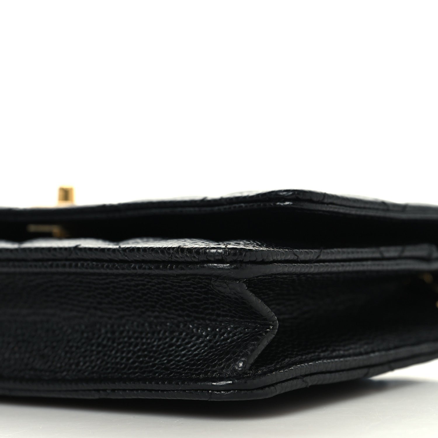 Design & Material: This iconic accessory is crafted from black caviar leather, a grained calfskin prized for its pebbled texture and extreme durability against scratches and daily wear. It features the signature diamond-quilted stitching across the exterior, embodying the classic Chanel aesthetic.