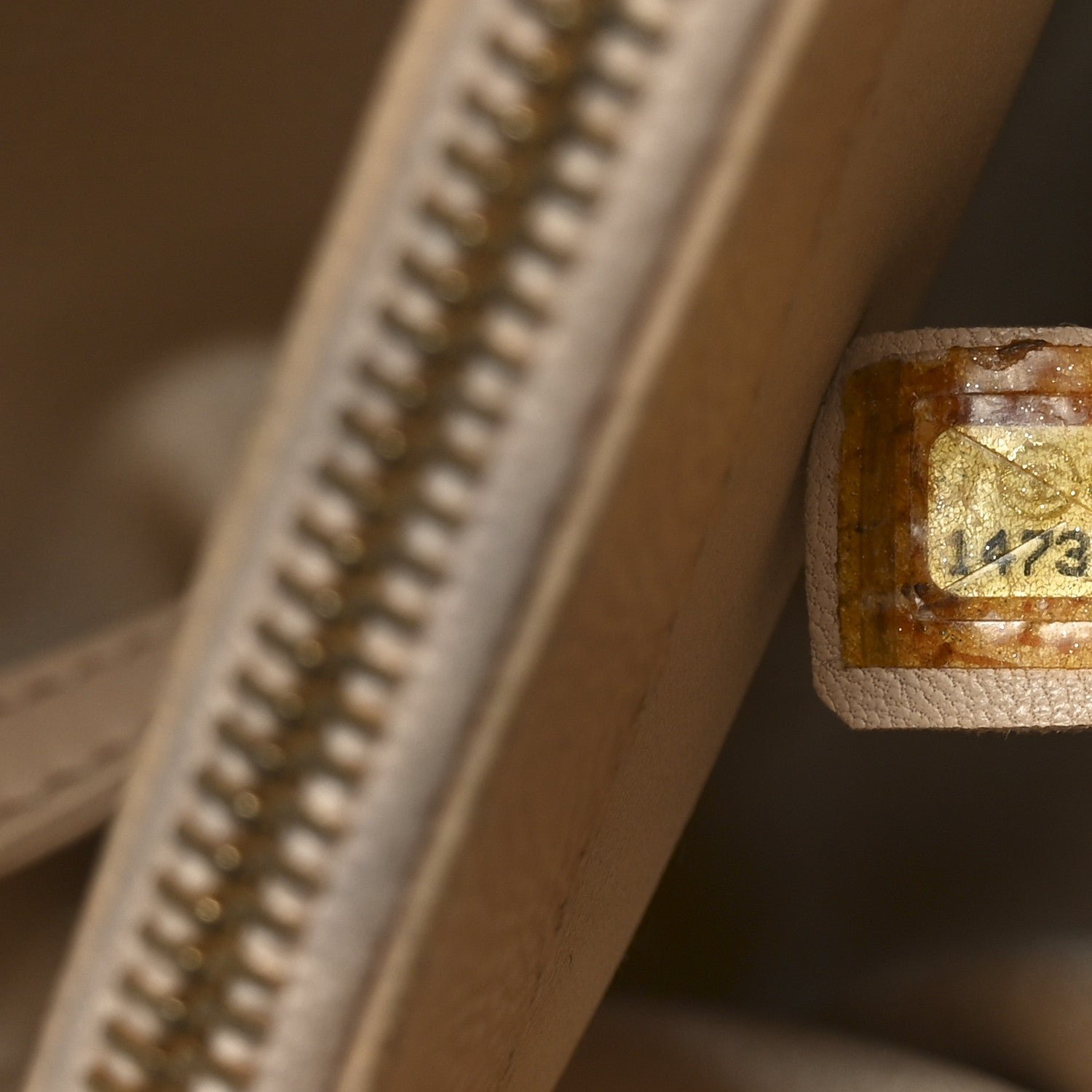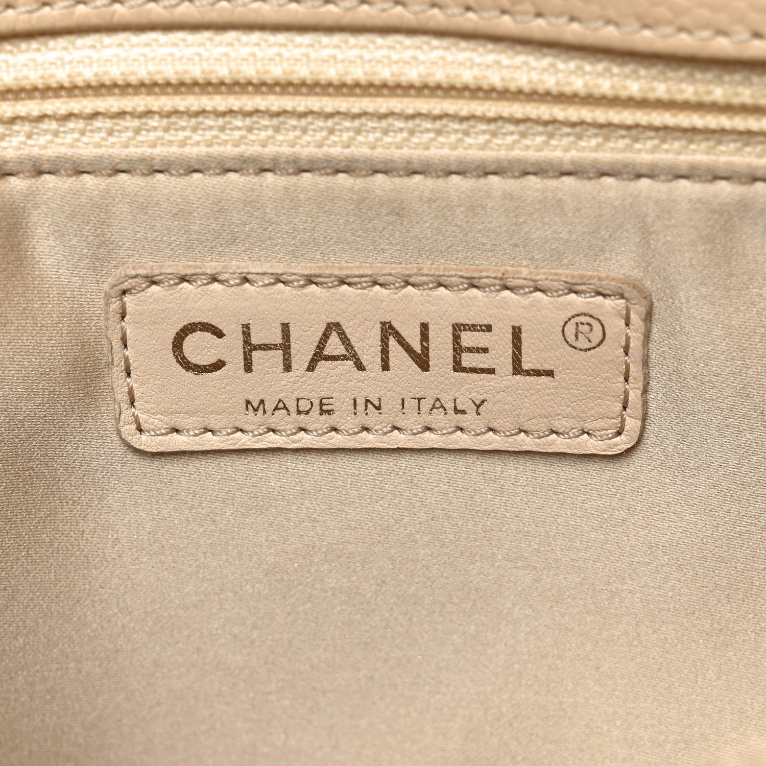 Design and Craftsmanship: This timeless shoulder tote is meticulously crafted from beige clair caviar leather, a signature pebbled calfskin highly regarded for its exceptional durability and resistance to scratches. It features the brand’s iconic diamond-quilted stitching across the exterior, maintaining a sophisticated and classic aesthetic.