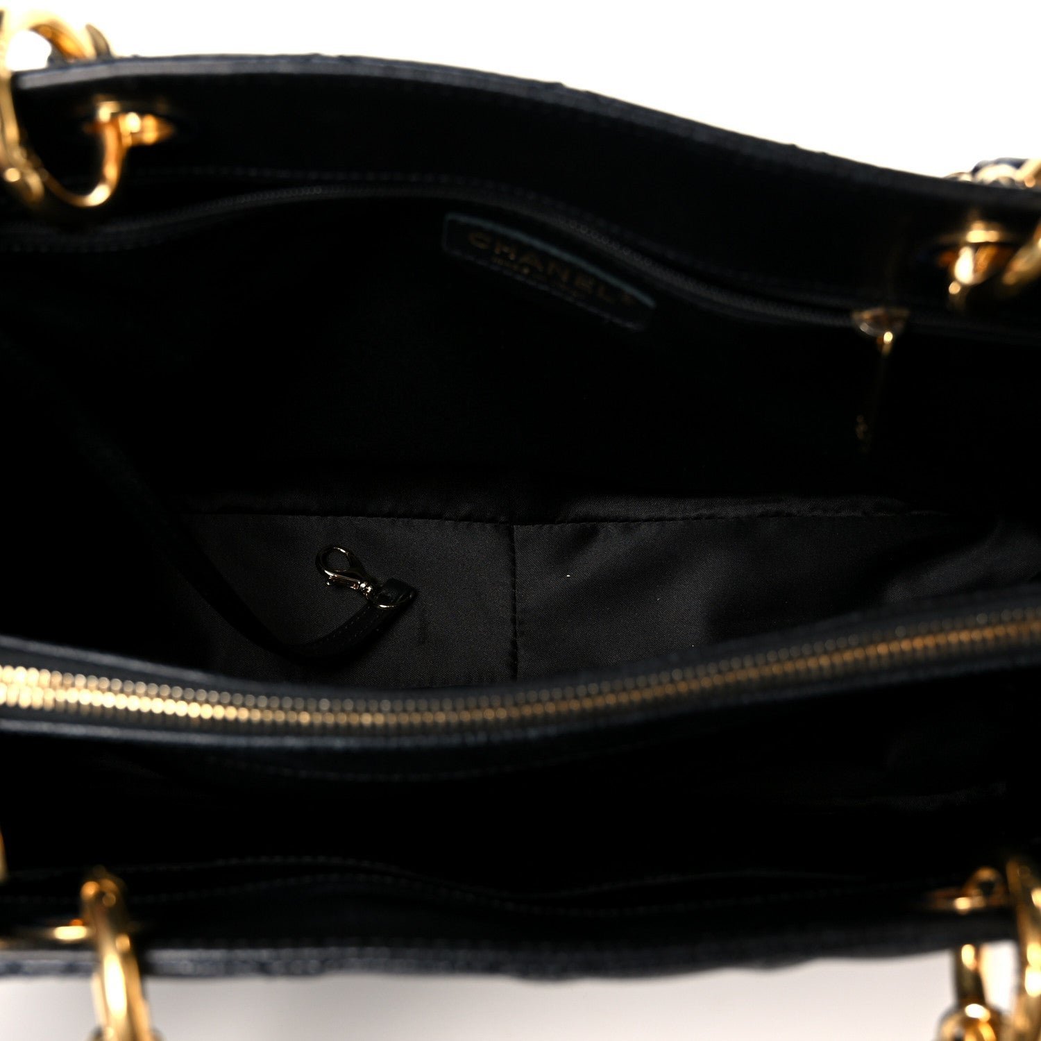 Strap and Hardware: The tote is equipped with double interwoven chain-link and leather shoulder straps. These straps feature leather shoulder pads at the top for enhanced comfort during wear. The hardware is most commonly finished in polished gold-tone (GHW) or silver-tone (SHW) metal.