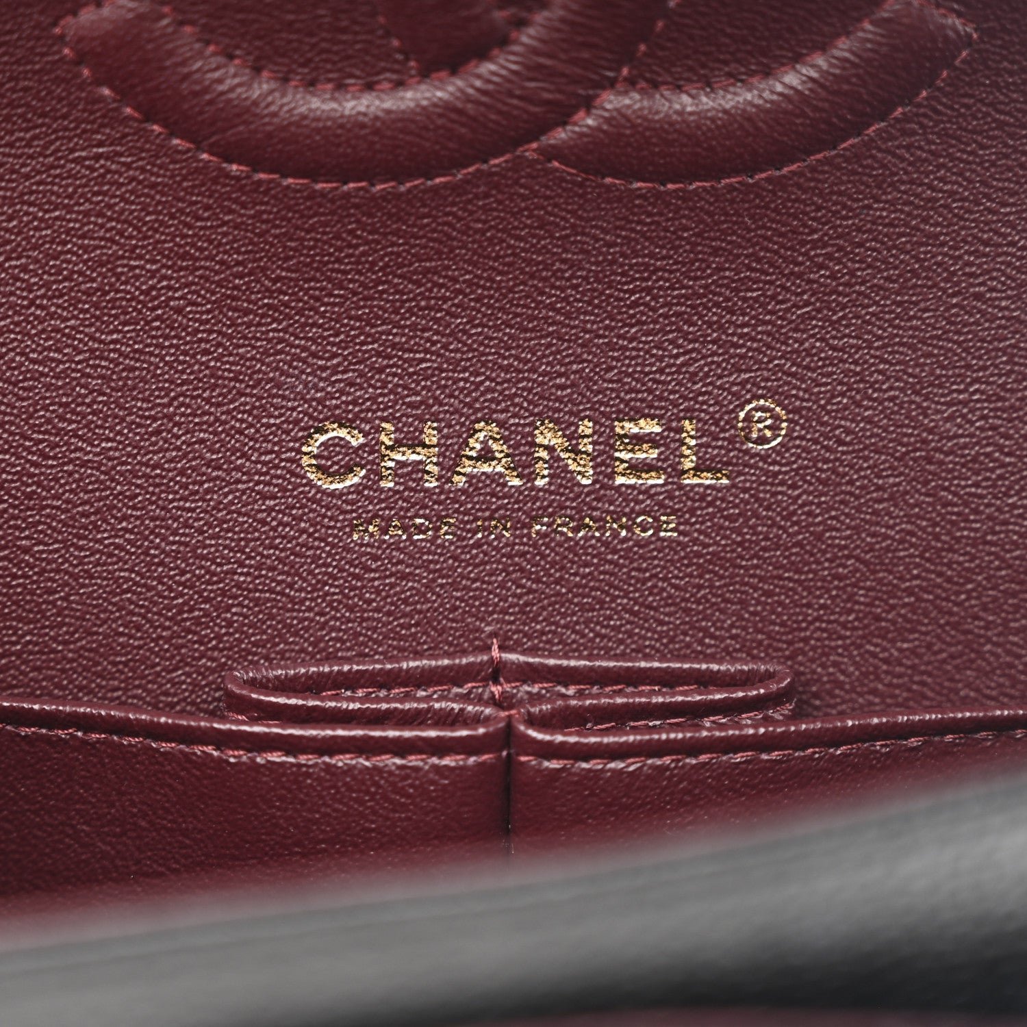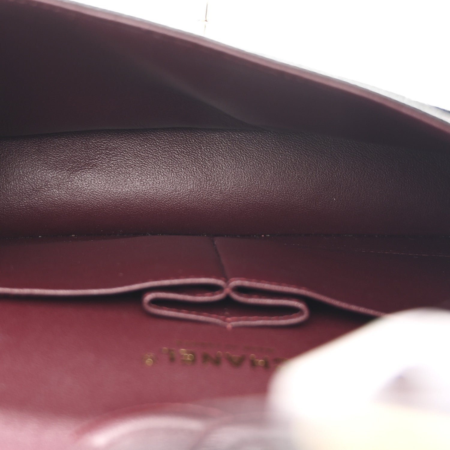 Double Flap Configuration: The “Double Flap” architecture provides structural integrity and added security. Opening the top flap reveals a secondary internal flap and a burgundy leather lining, a historical tribute to the colors of the orphanage where Coco Chanel was raised.