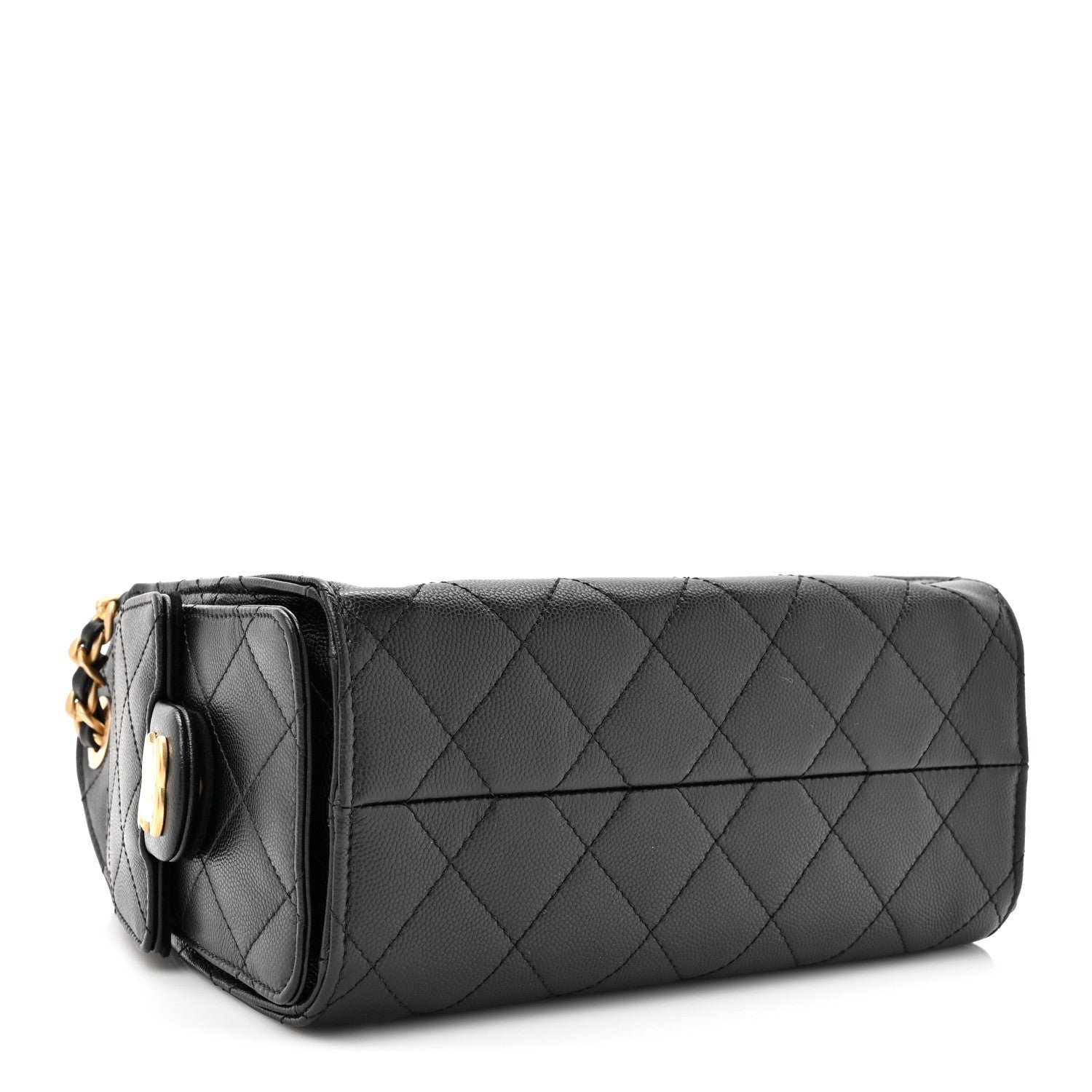 Hardware & Branding: Accented with polished gold-tone or antique gold-tone metal, the front is adorned with a signature interlocking CC turn-lock clasp.