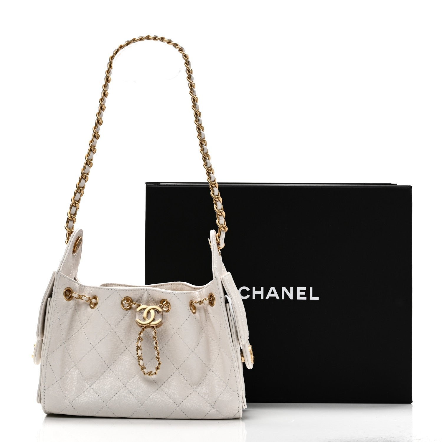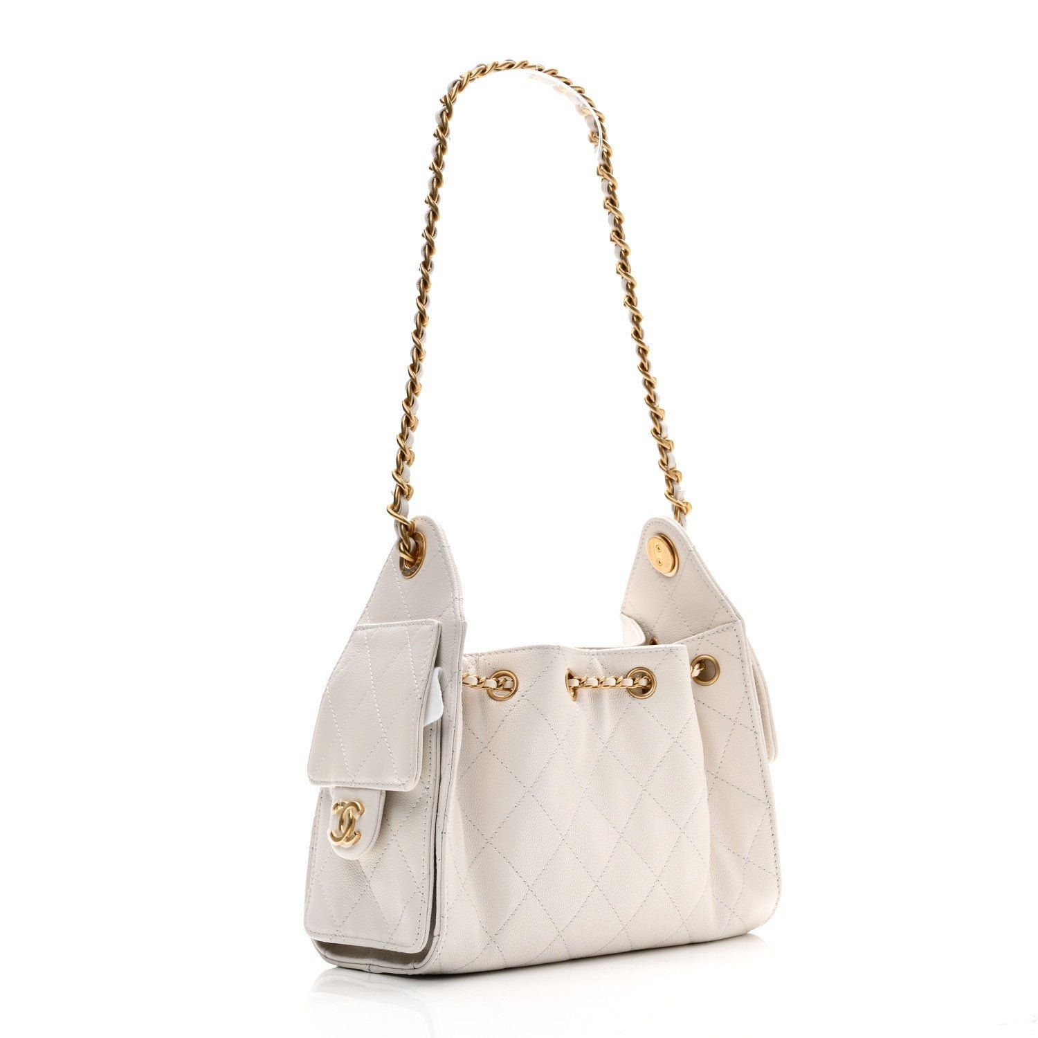 The Chanel Caviar Quilted Mini Chanel 25 Handbag in White is a contemporary hobo-style accessory that balances the house’s heritage codes with modern, utilitarian functionality. Part of the Spring-Summer 2026 Pre-collection and Cruise 2025/26 lineups, this model is specifically celebrated for its durable pebbled texture and relaxed silhouette.