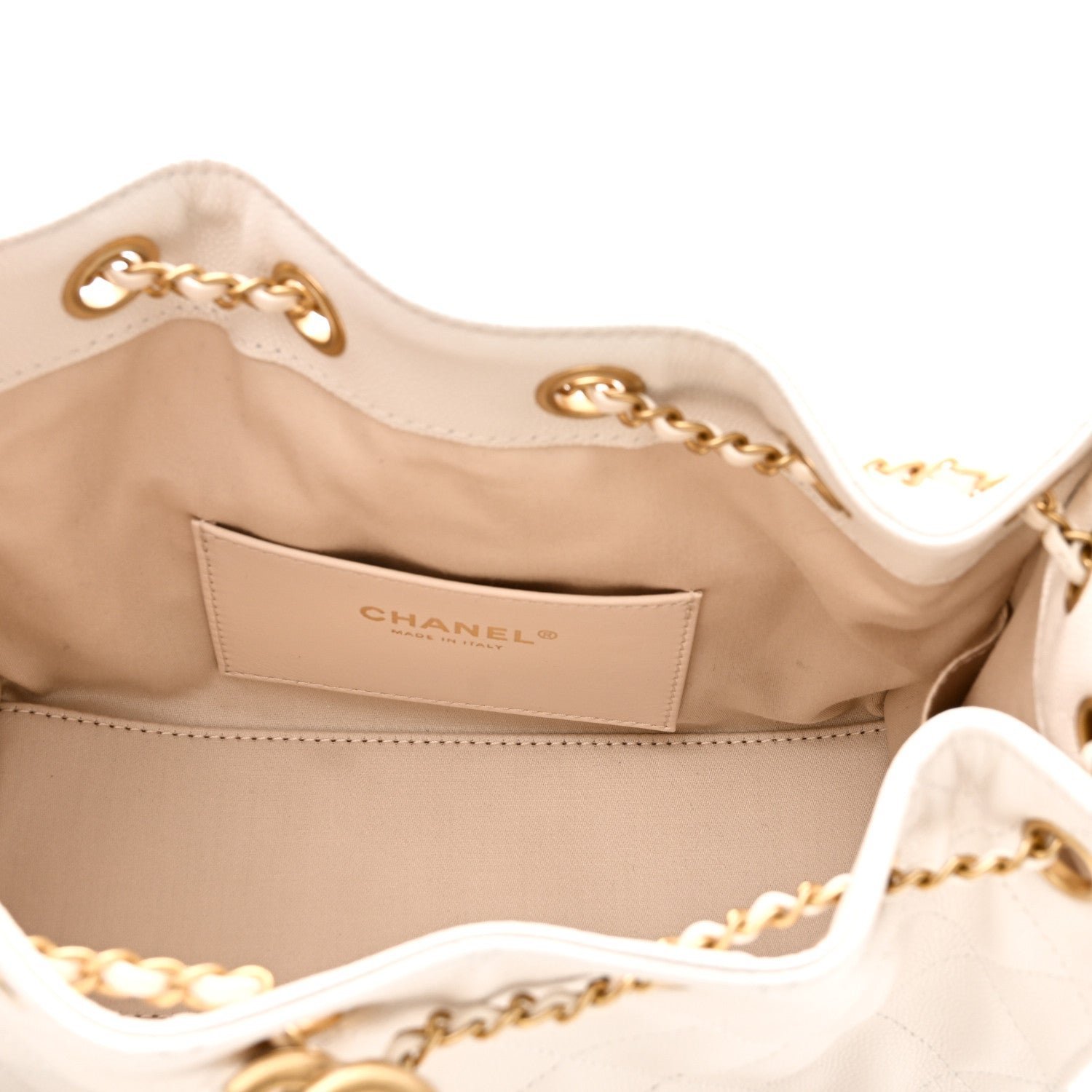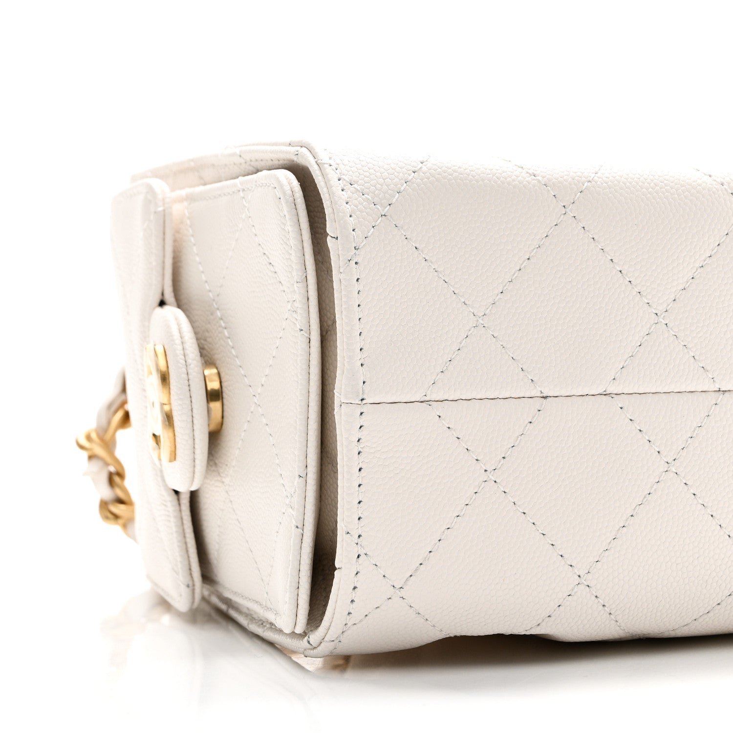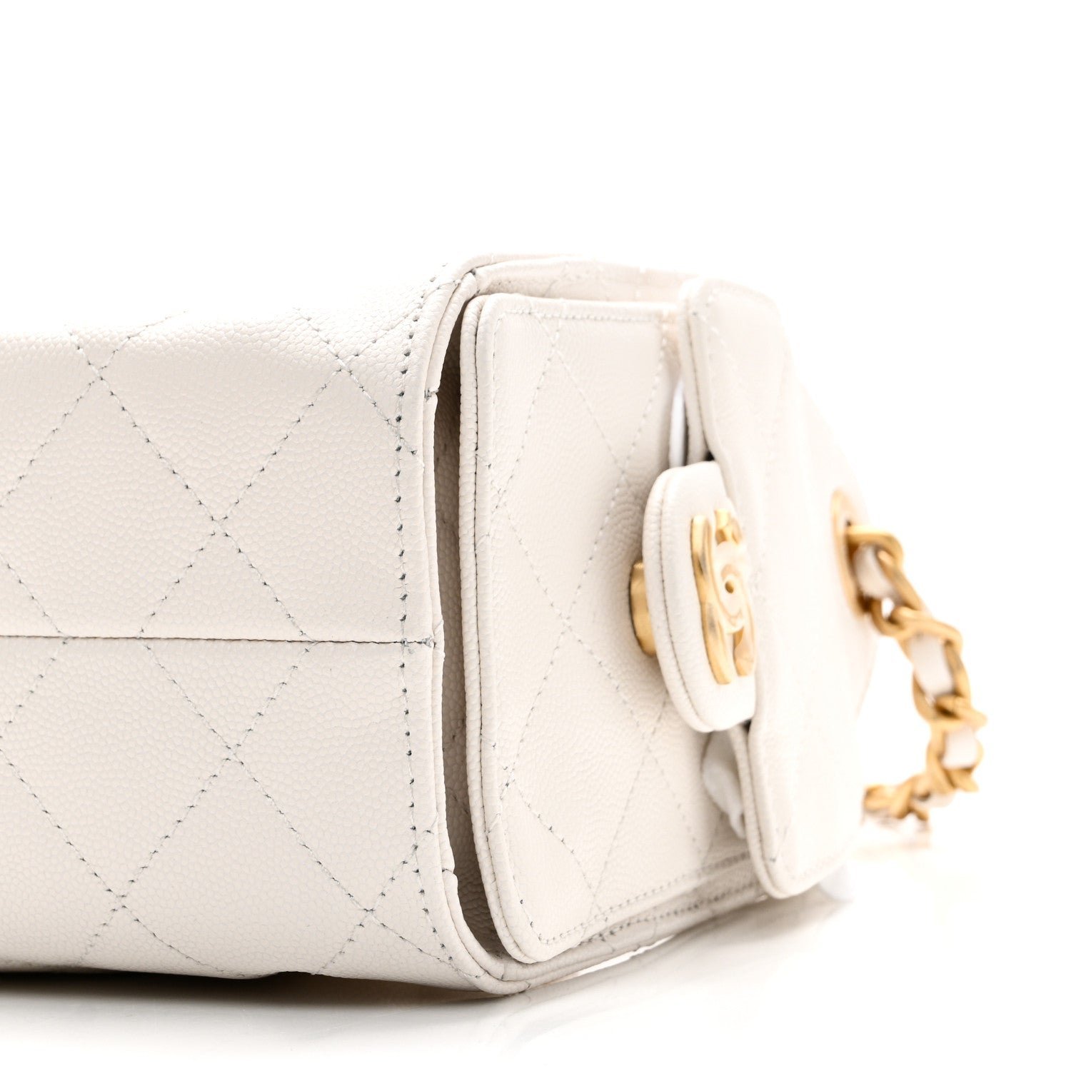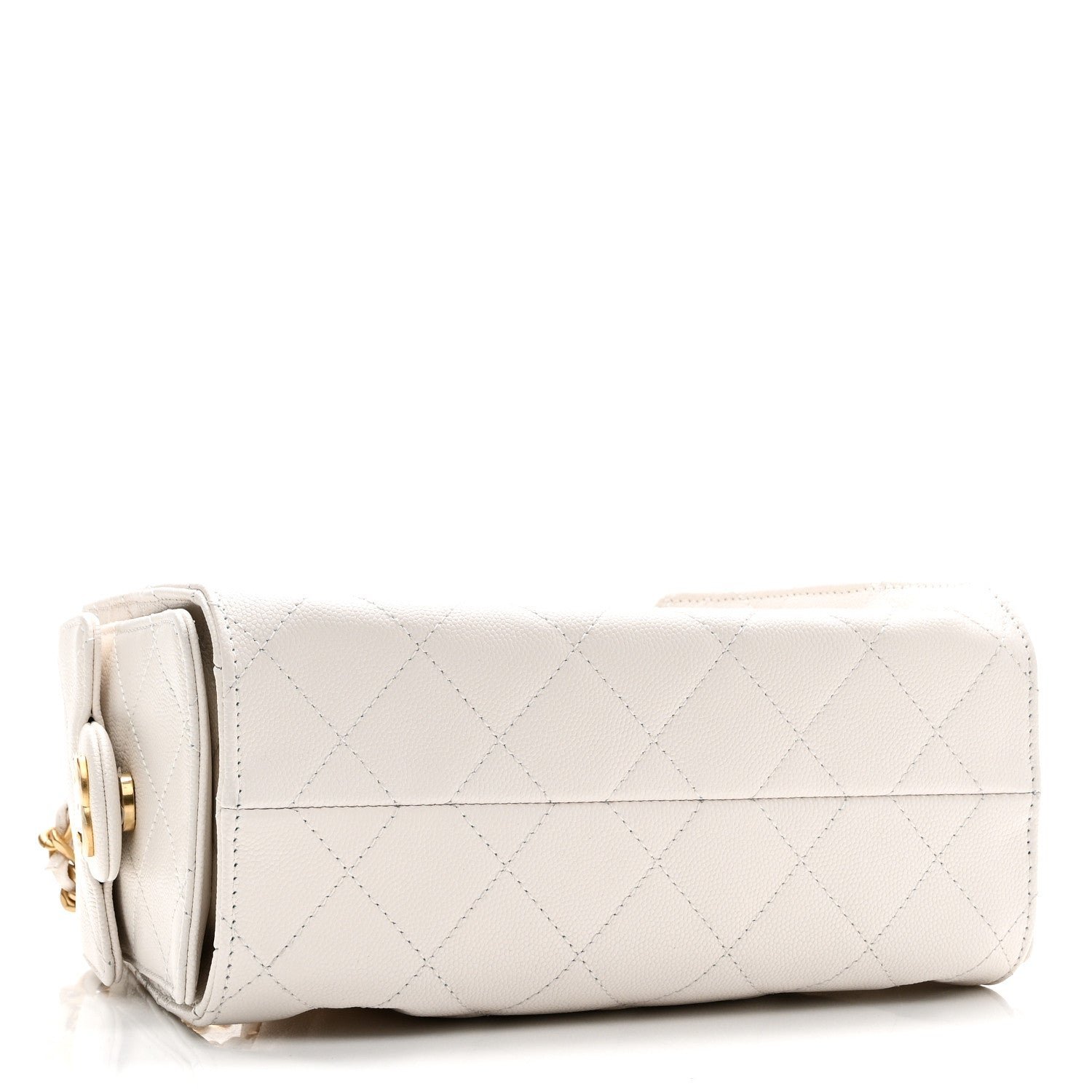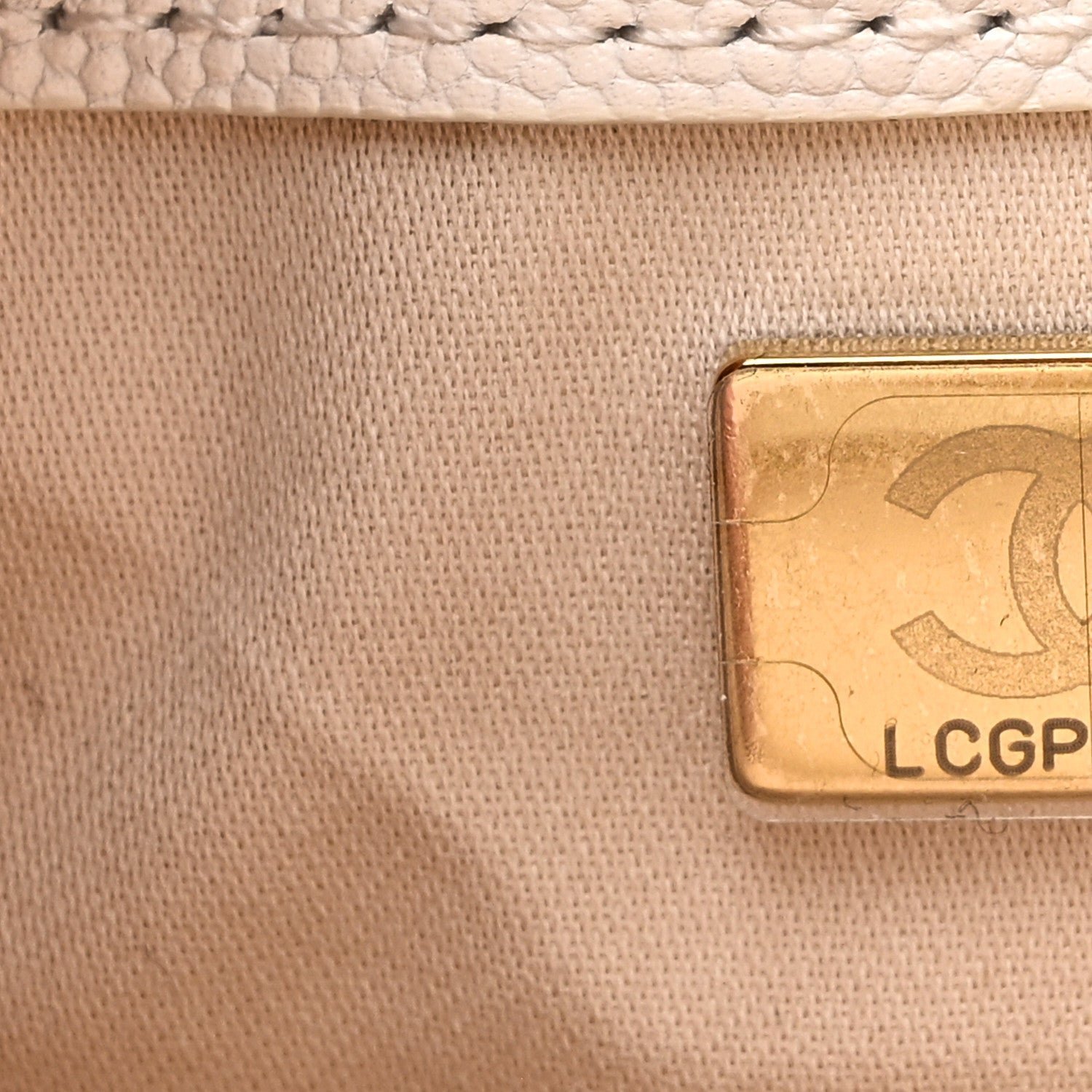 Exterior Material: The bag is crafted from white grained calfskin (caviar leather), a material highly resistant to scratches and daily wear.