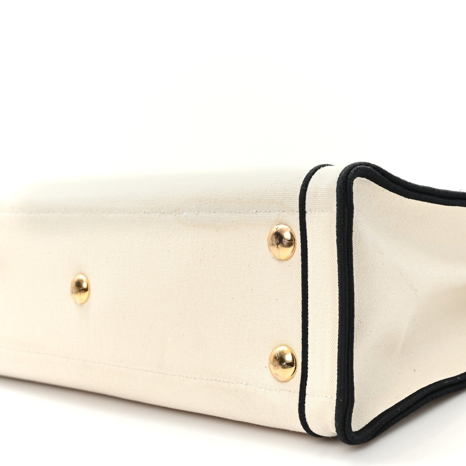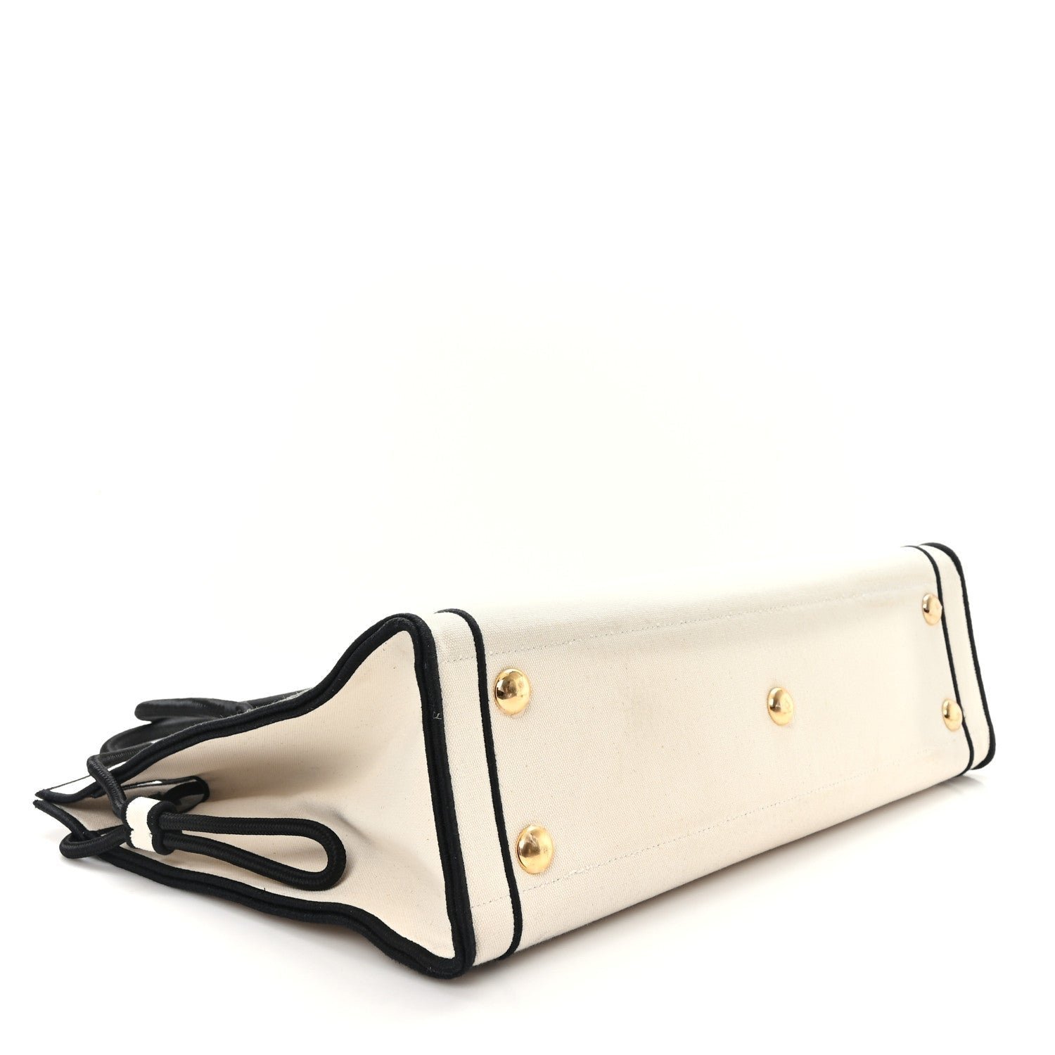 | Material | Natural cream fabric (canvas) with black nylon or leather trim. |