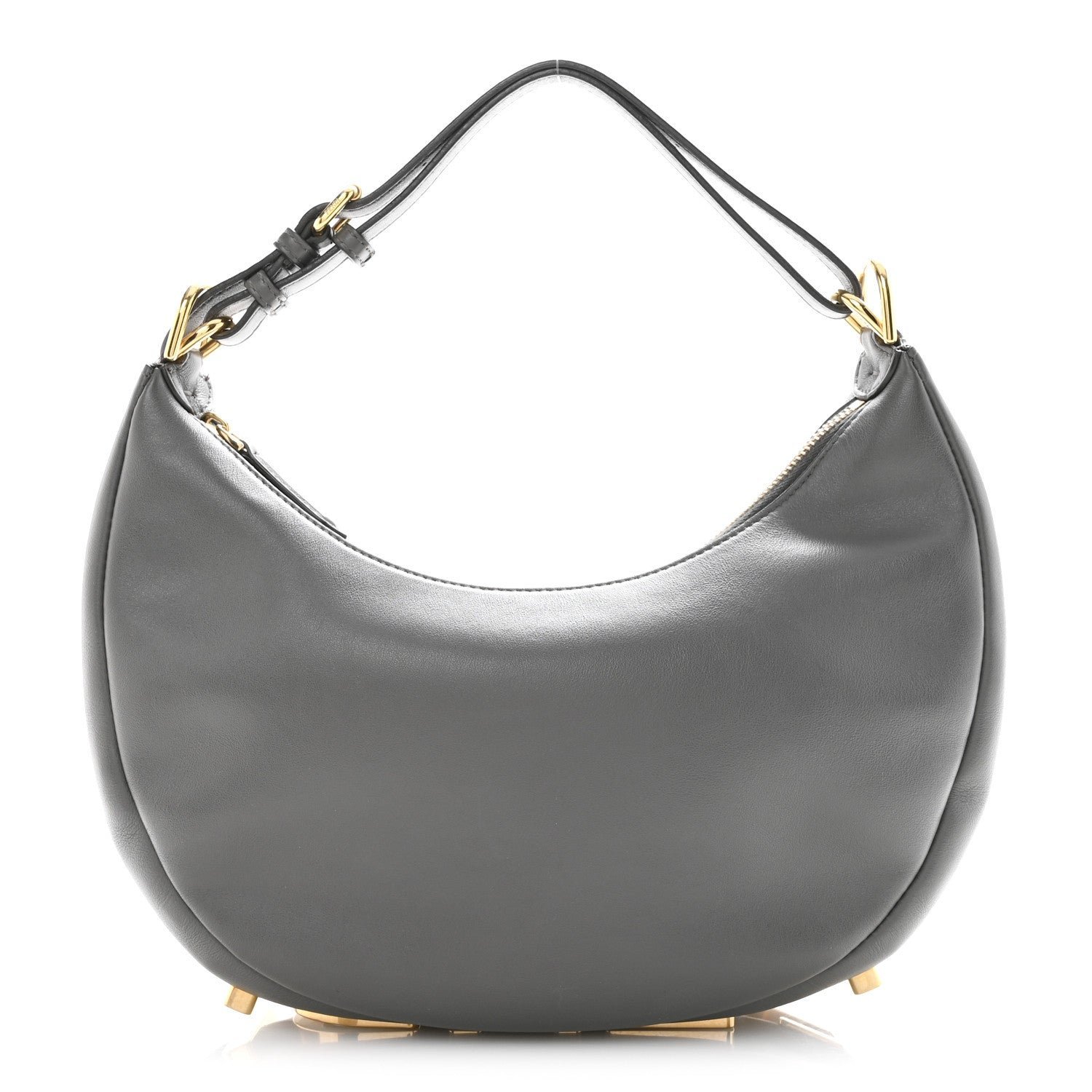 The Small Fendigraphy is a versatile hobo bag defined by its clean, crescent silhouette and structured design. This iteration is meticulously crafted from Anthracite calfskin leather, a deep grey shade that serves as a modern alternative to classic black.