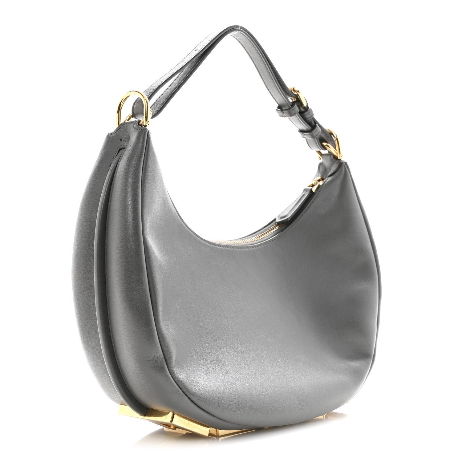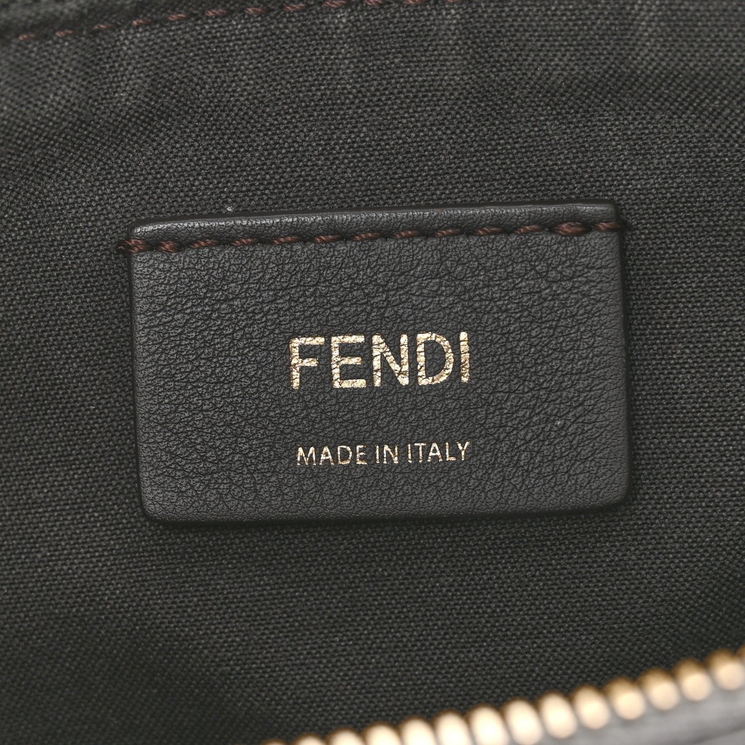 Hardware: Polished gold-finish metalware, including the signature FENDI lettering along the base.