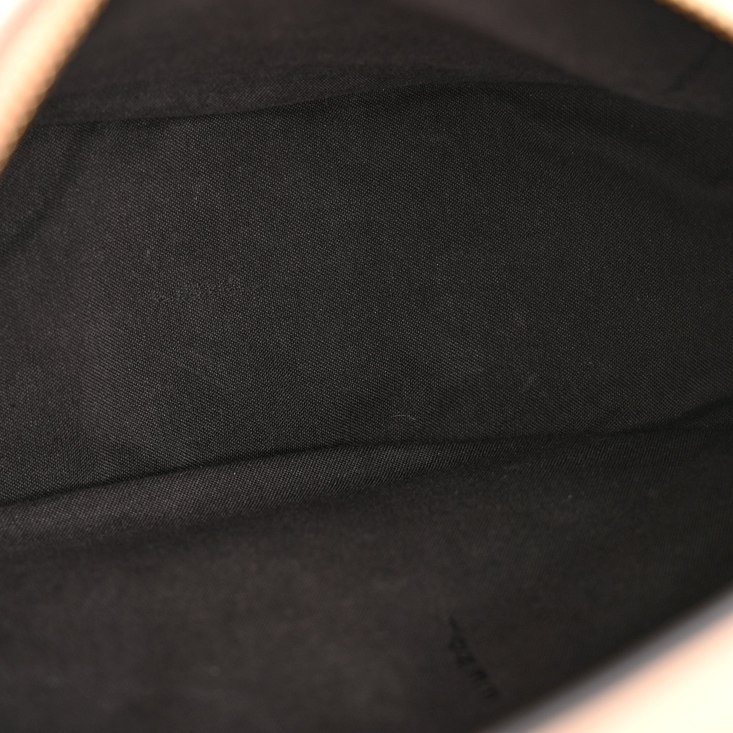 The bag’s most striking feature is the oversized vintage gold-finish metal FENDI lettering on the base, which is clearly visible when the bag is carried under the arm. It features a zip closure that opens to a spacious, fabric-lined internal compartment designed for daily essentials. For versatile carrying, the bag includes an adjustable, detachable handle and specialized hooks that allow for the attachment of a separate shoulder strap for crossbody wear.