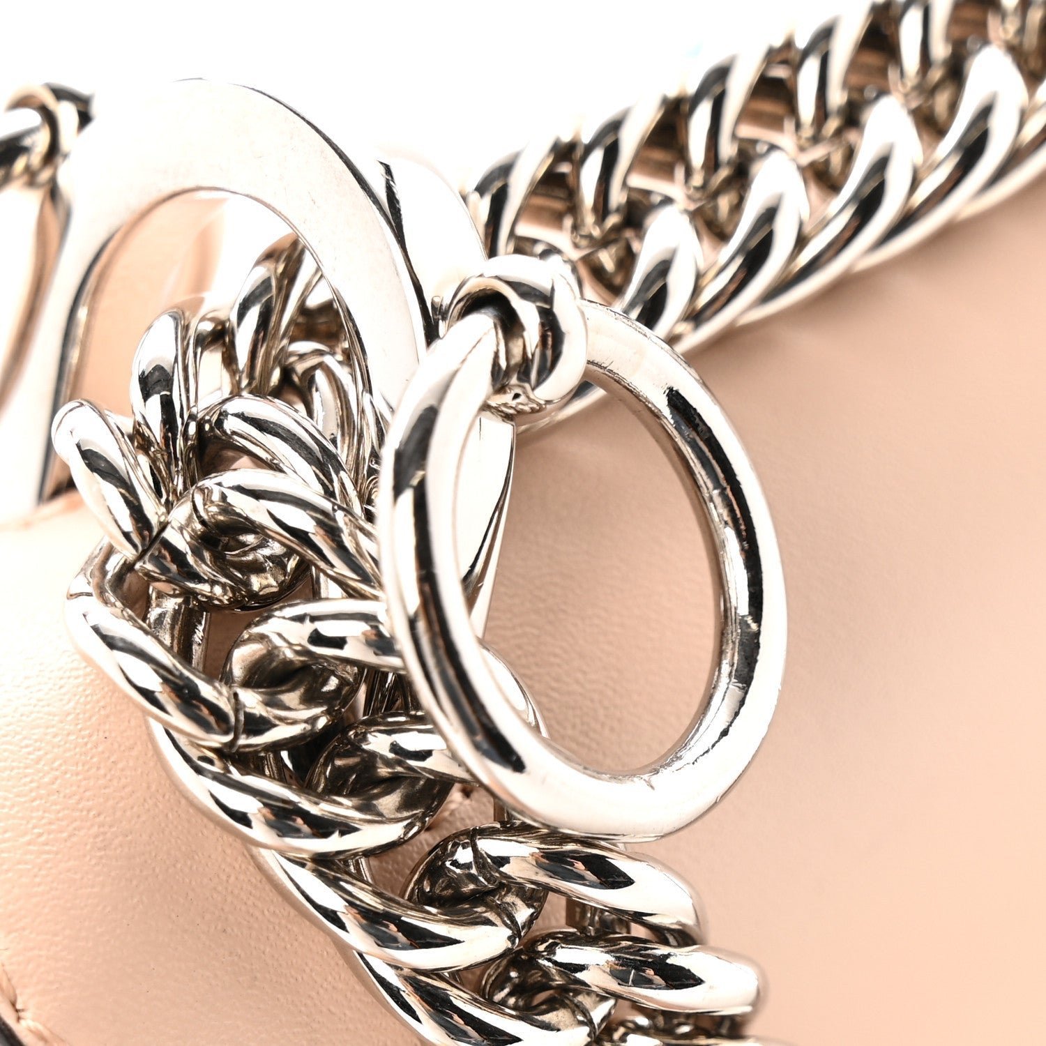 • Handle/Strap: Sliding chain shoulder strap with a leather shoulder pad for comfort.