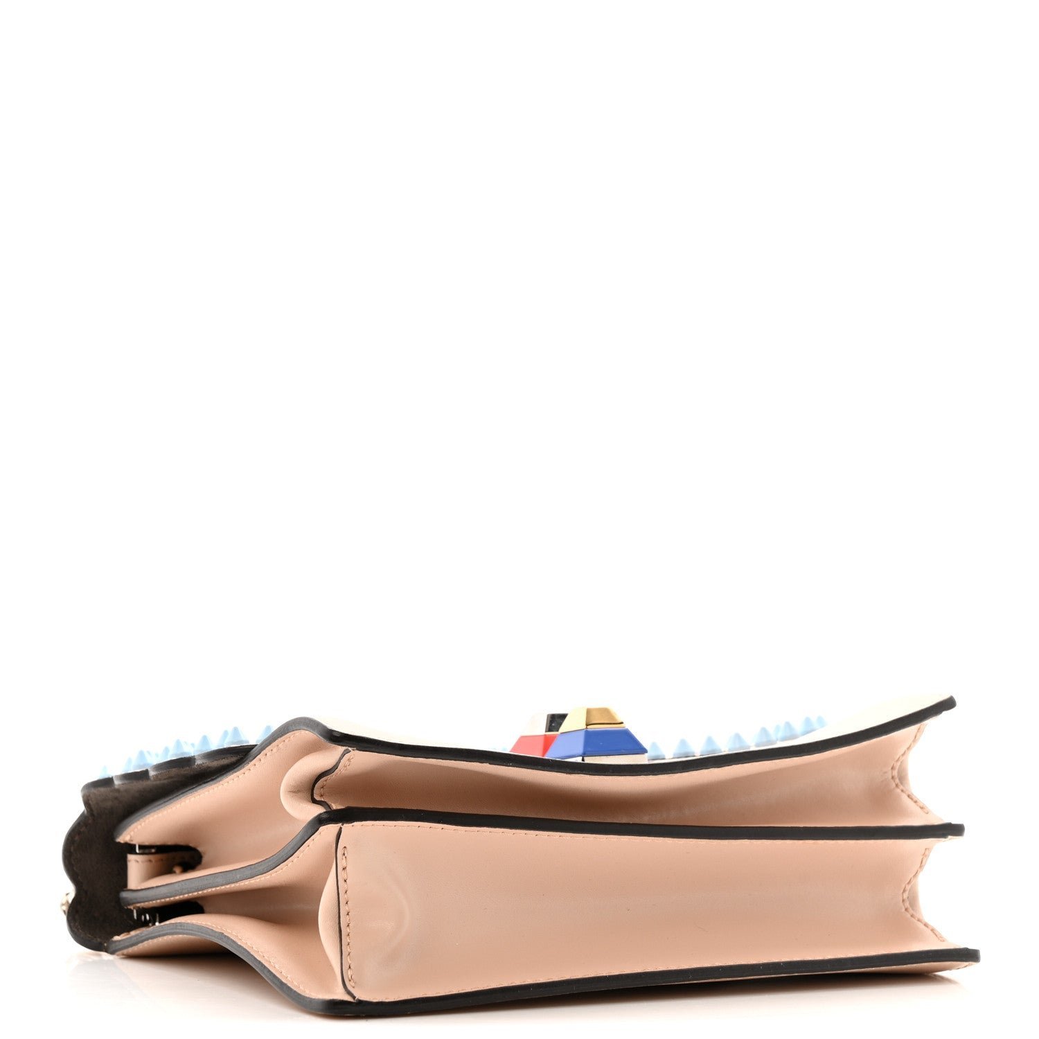 • Hardware: Polished gold-finish metalware with multicolor plexiglass pyramid studs.