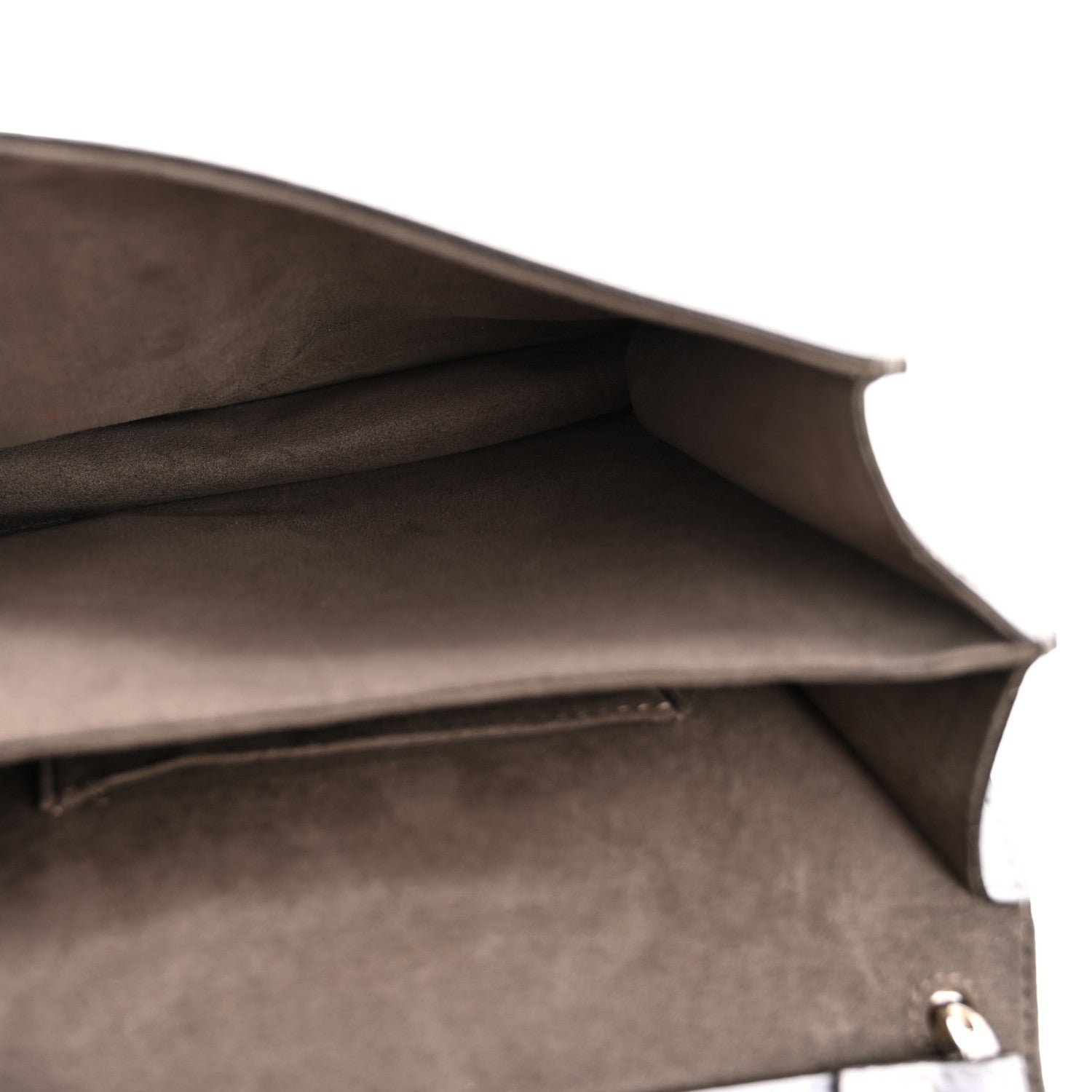Interior: Suede-effect lining (often in Charcoal or Beige) with two main compartments divided by a stiff partition.