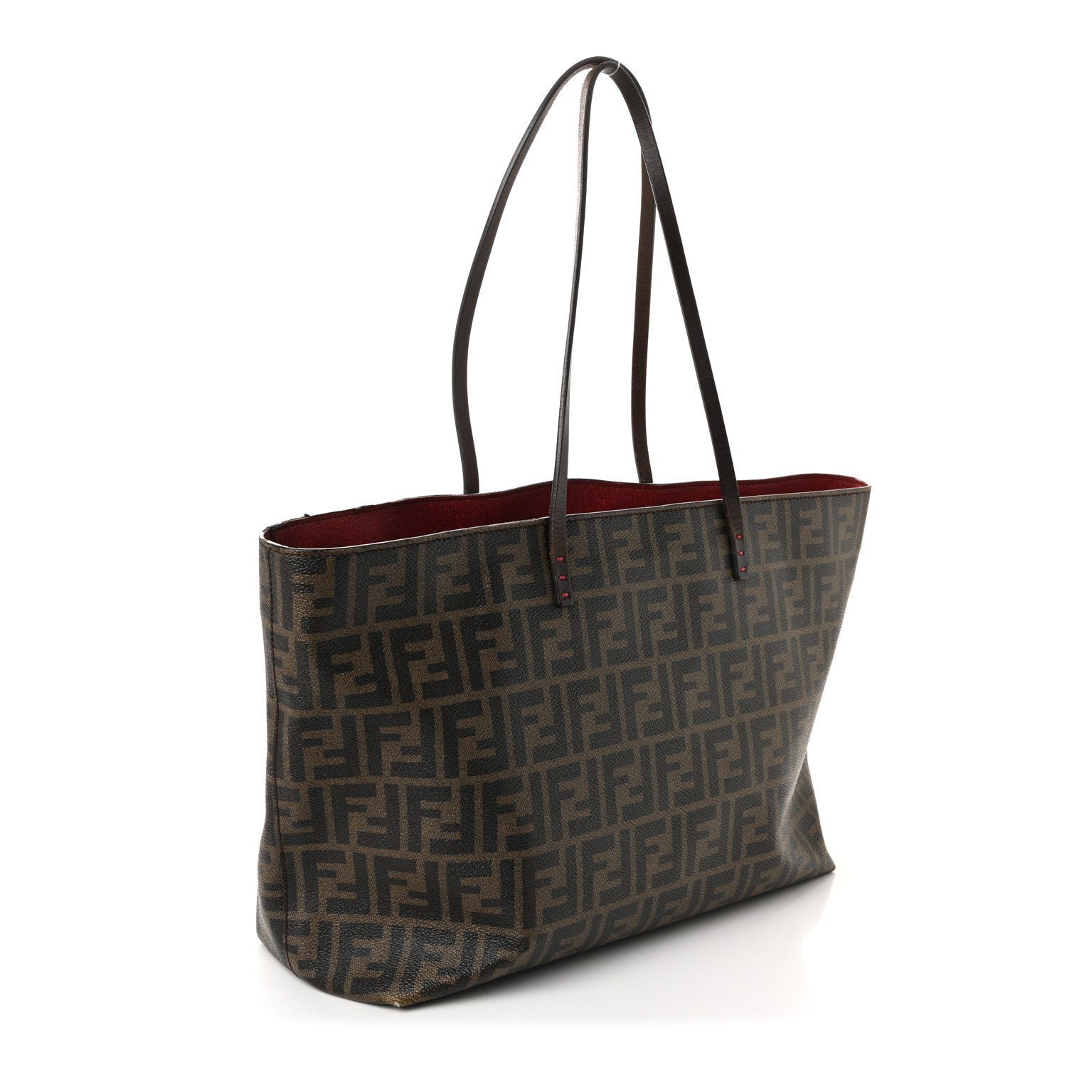 Fendi Zucca Spalmati Medium Roll Tote (Tobacco/Rosso)