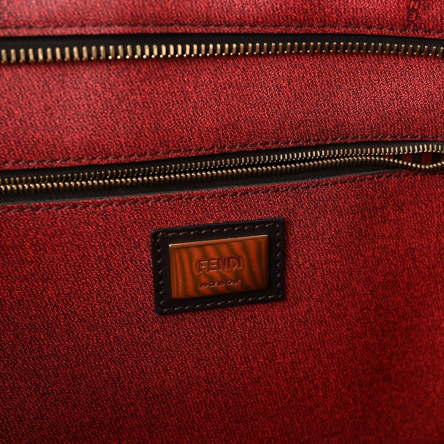 • Hardware: Polished gold-tone hardware with Fendi engraving.