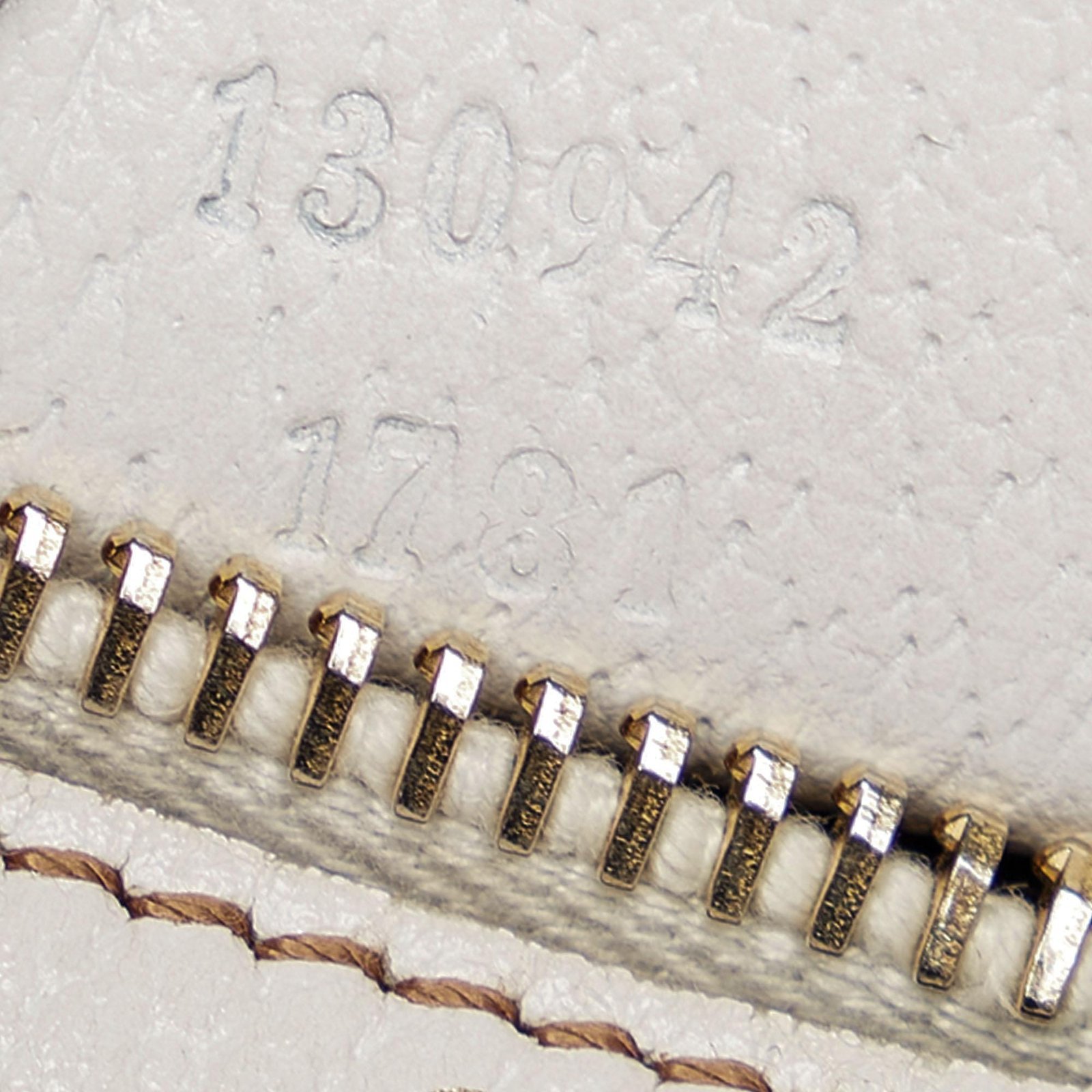 - White leather exterior with gold-tone accents