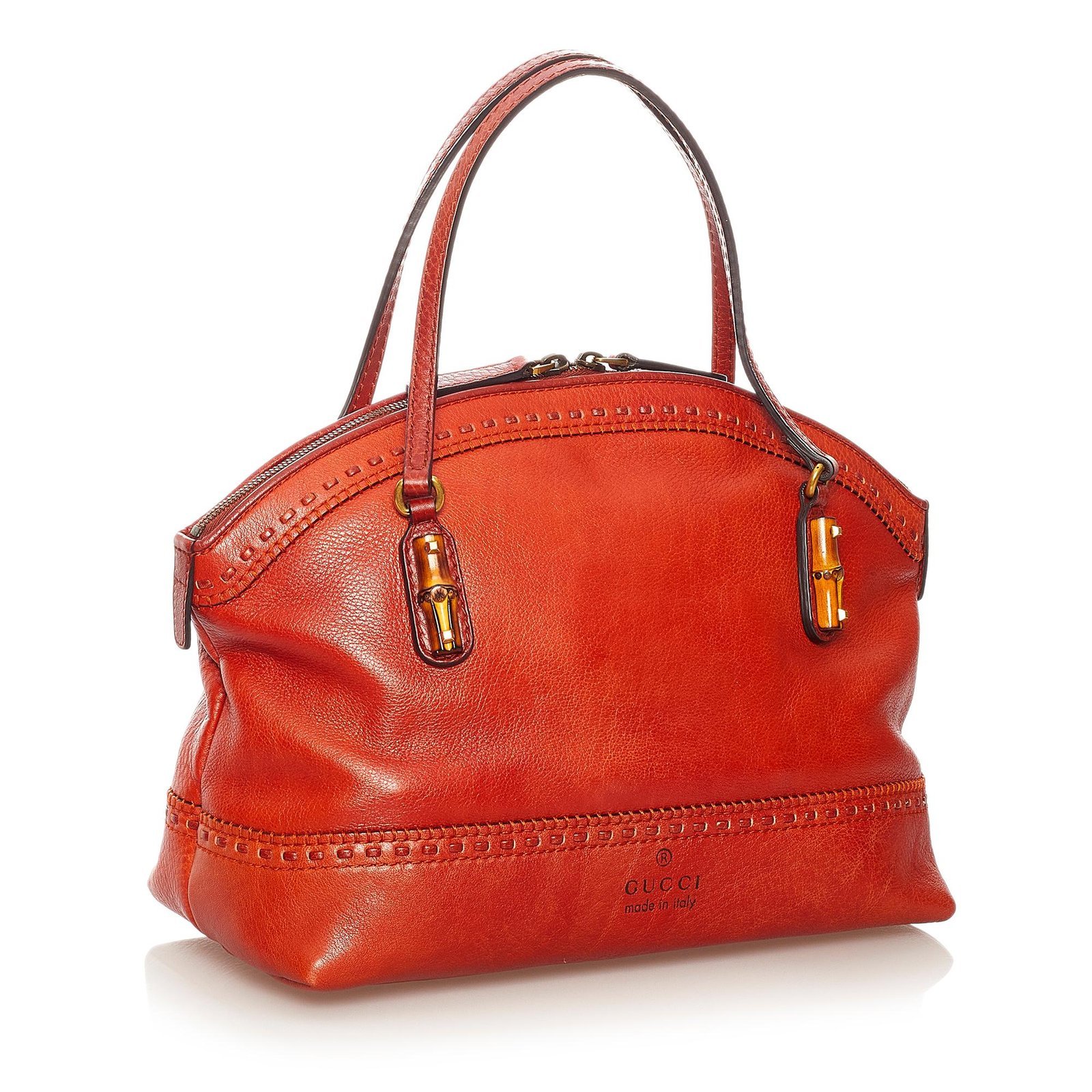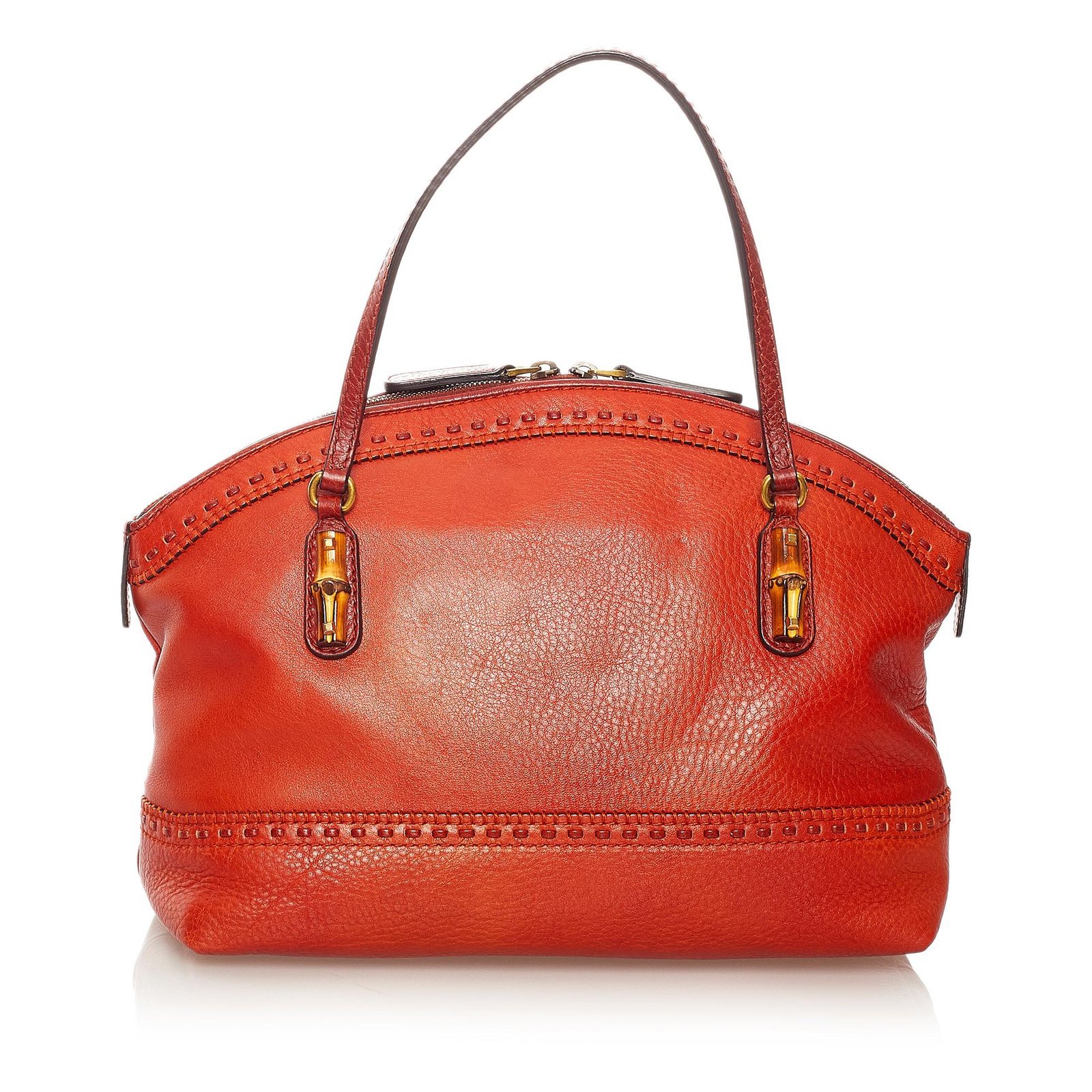The Gucci Bamboo Crafty Leather Tote Bag is a vibrant and versatile accessory crafted from luxurious orange leather and pony-style calfskin. Featuring Gucci’s signature bamboo detailing, this tote blends timeless elegance with contemporary style, making it perfect for everyday use or elevating casual outfits.