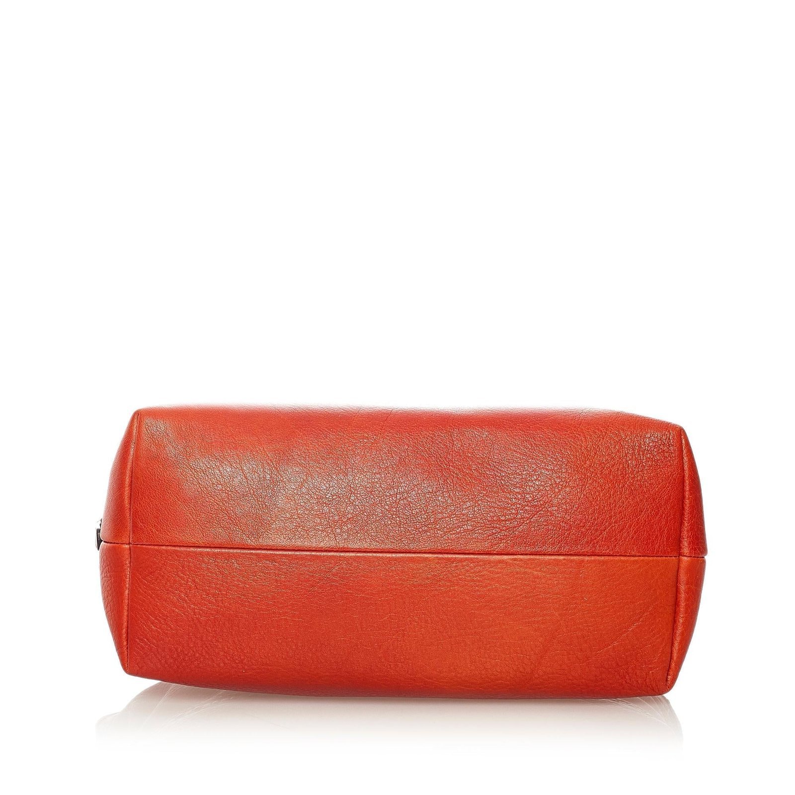 - Orange leather and pony-style calfskin exterior
