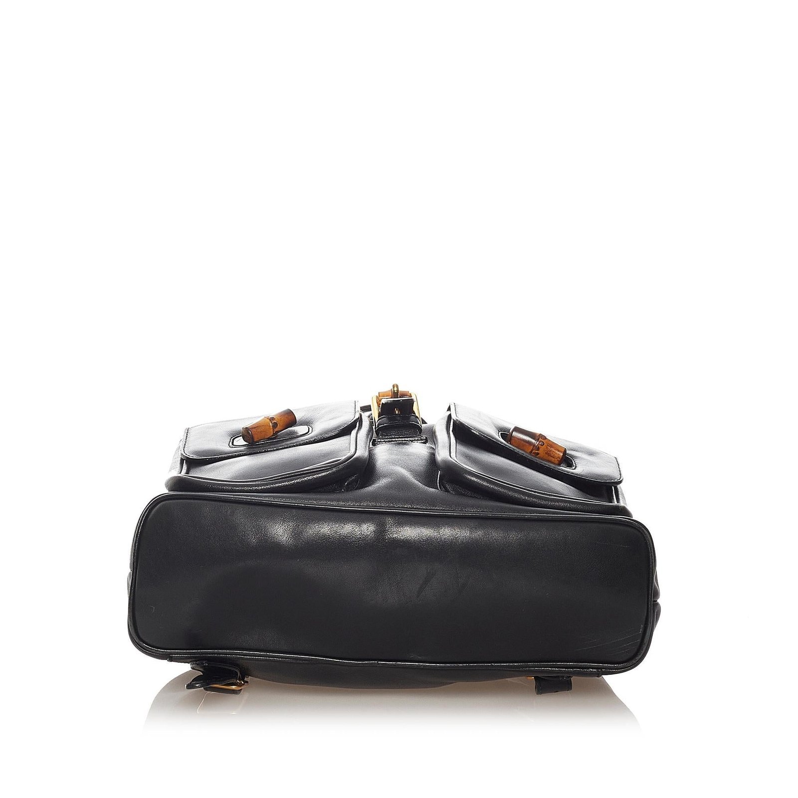 Its structured yet relaxed shape makes it an ideal companion for daily outings, travel, or casual styling, while the signature bamboo accents add a refined Gucci touch.
