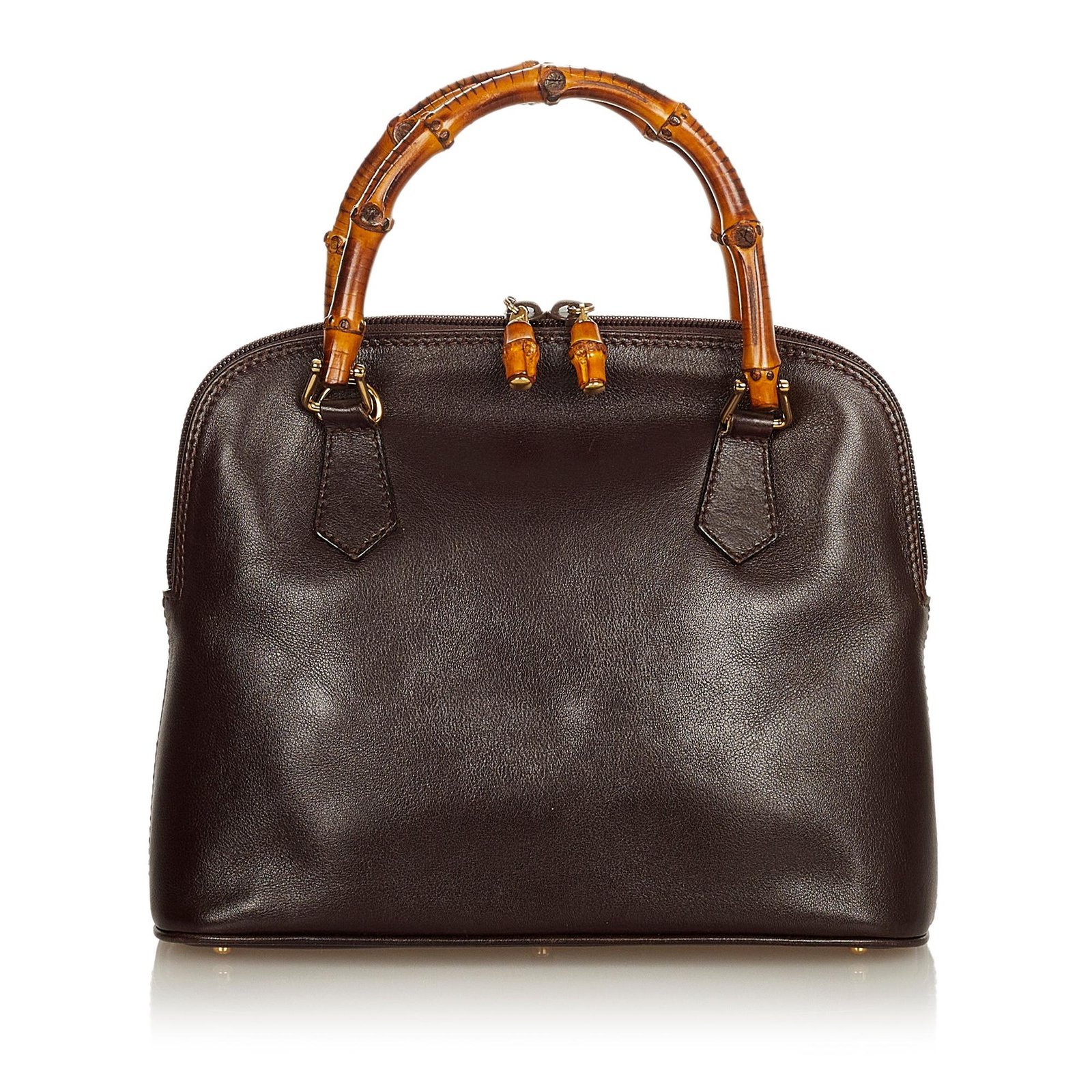 The Gucci Bamboo Leather Handbag is a chic and versatile accessory that combines iconic Gucci design with elegant craftsmanship. Crafted from luxurious bordeaux leather with gold-tone accents, this handbag features the signature bamboo handle detailing, creating a refined and timeless focal point.