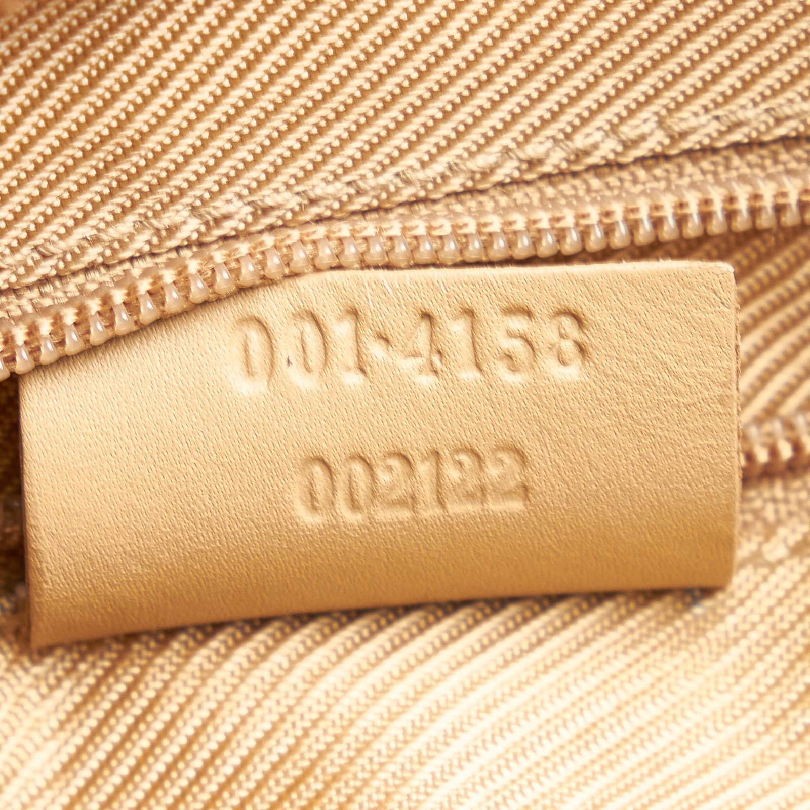 - Brown and beige canvas exterior with leather trim