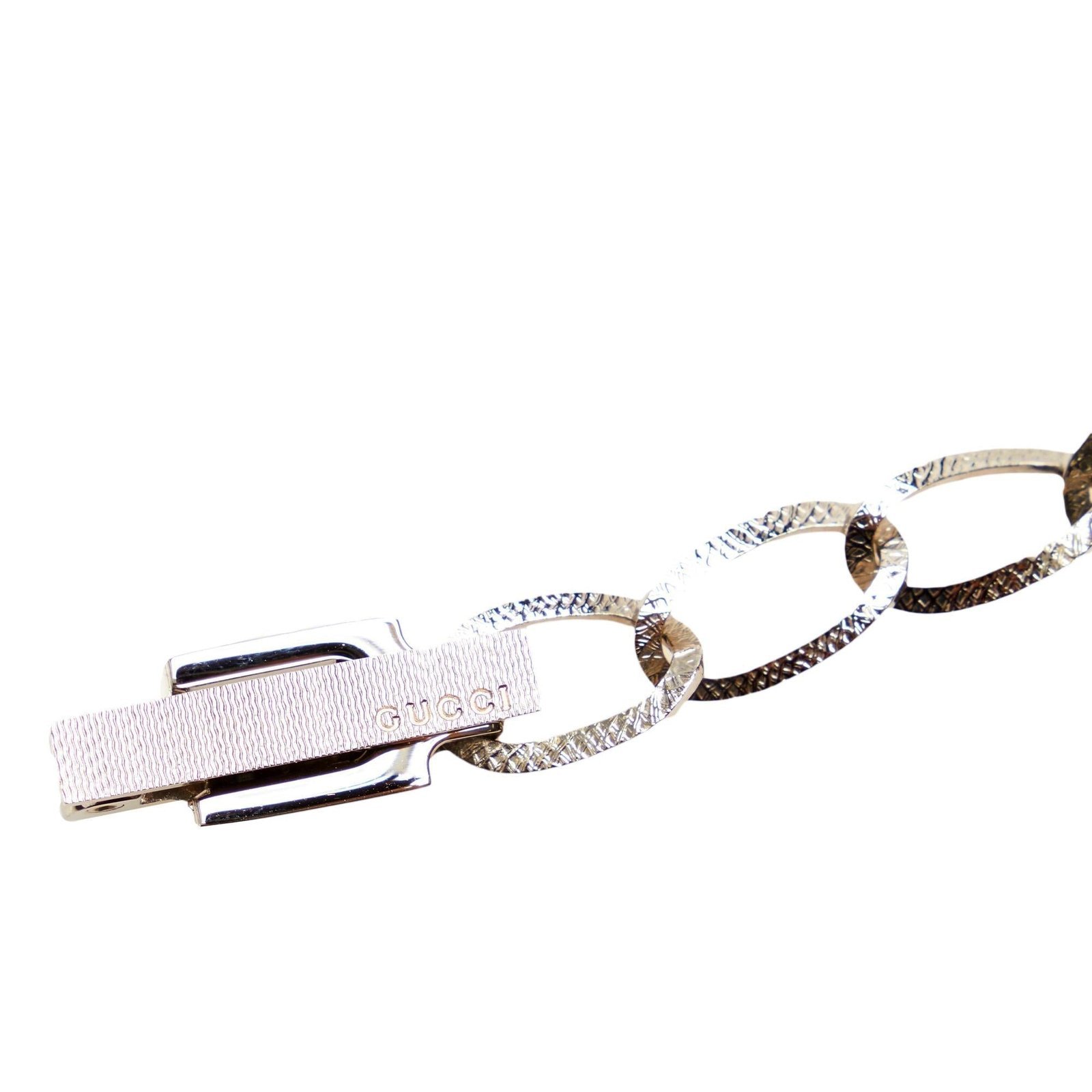 The Gucci Chain-Link Belt is a stylish and versatile accessory that effortlessly elevates any outfit. Crafted from high-quality silver-tone metal, this belt features a striking chain-link design and a front clasp closure, combining luxury with contemporary edge.