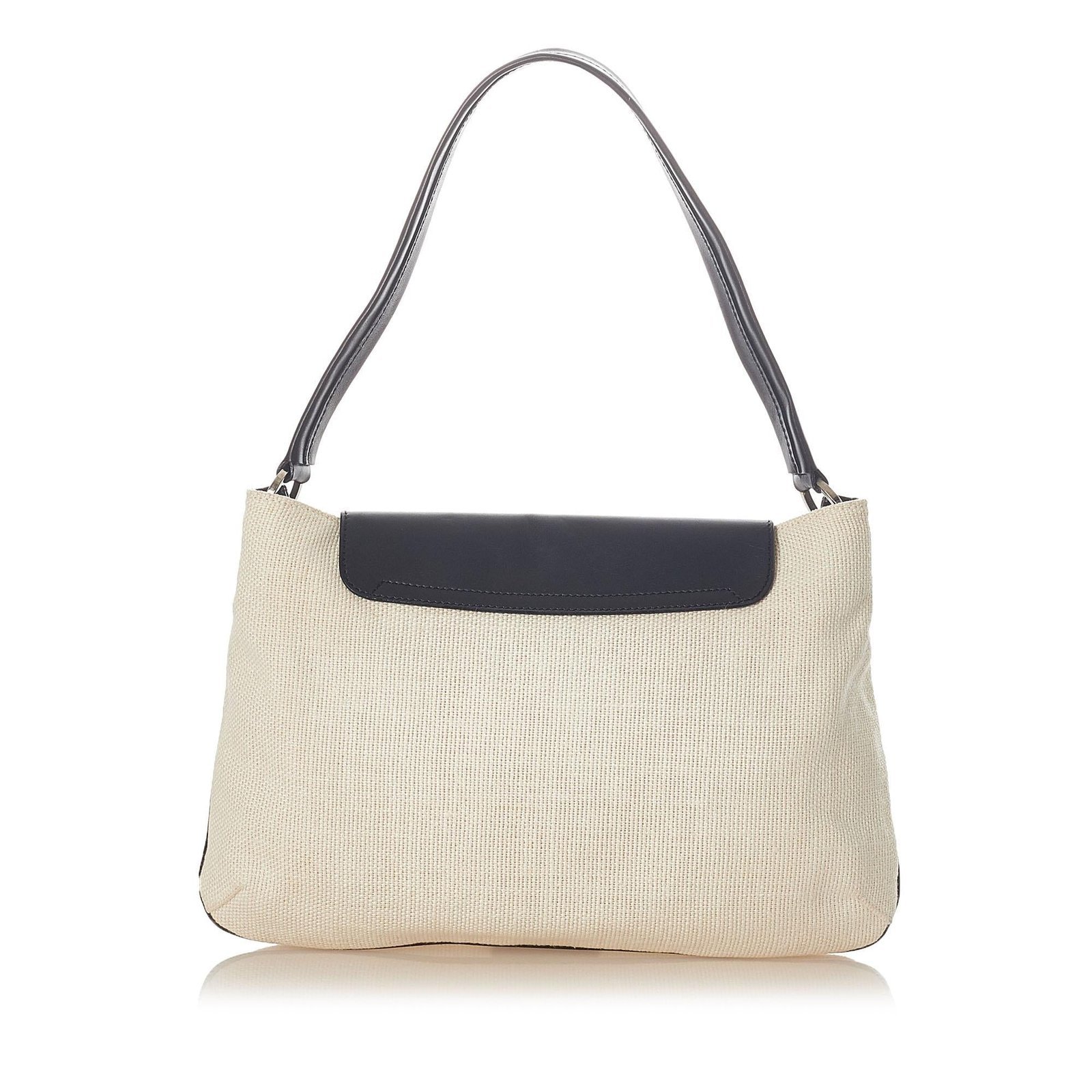 - White canvas exterior with leather trim for a sophisticated contrast