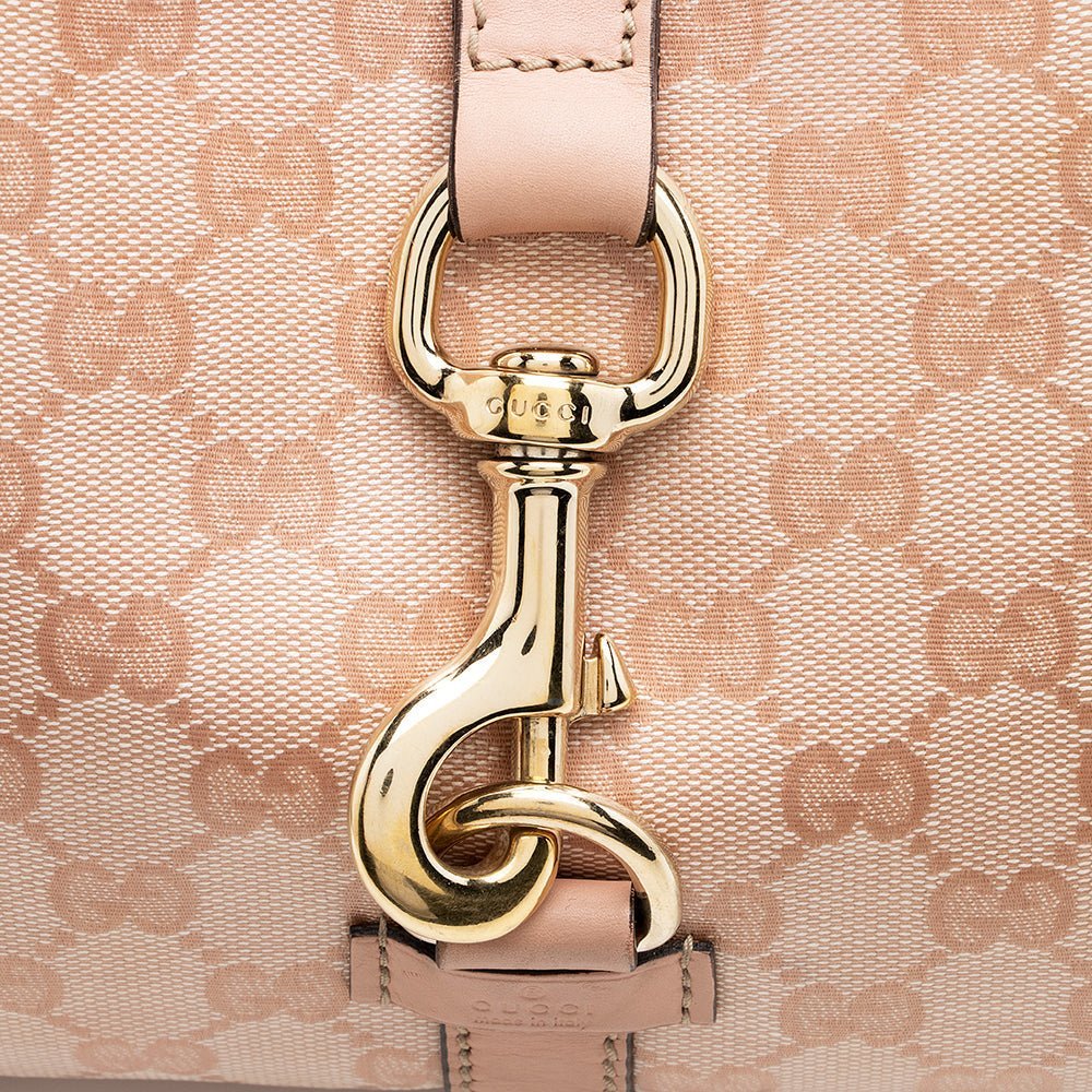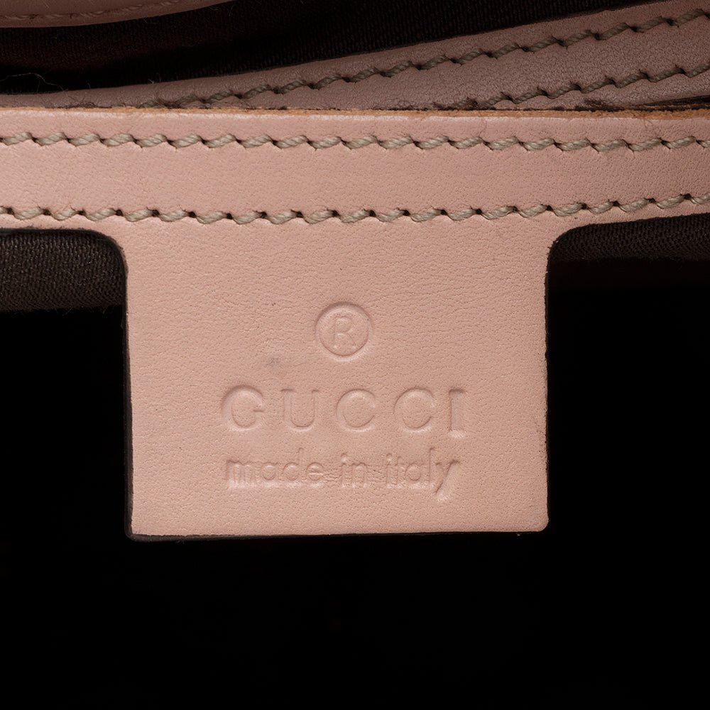 - Exterior Material: Pink embossed leather with crystal GG detailing