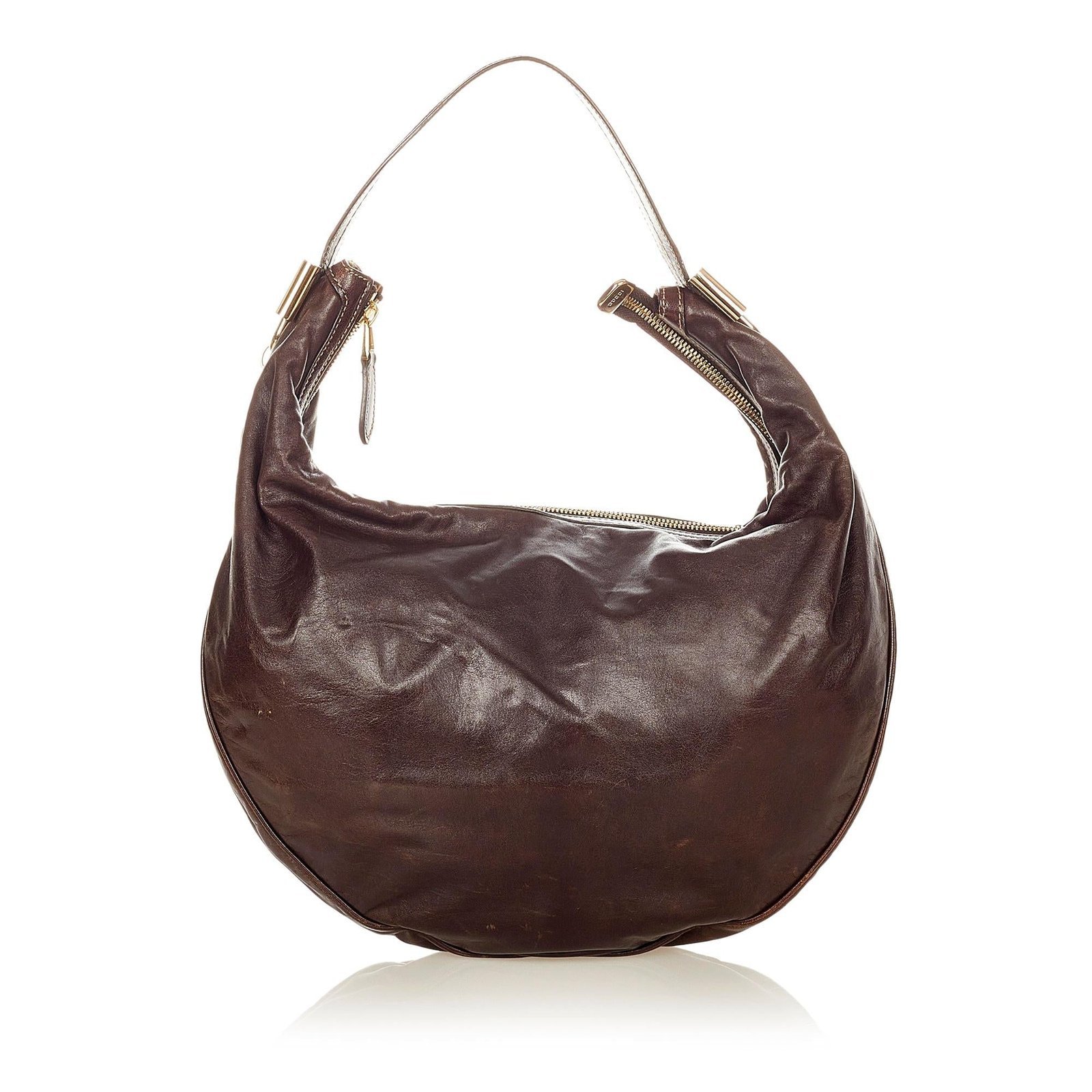 The Gucci Duchessa Leather Hobo Bag is a versatile and chic accessory that combines functionality with refined design. Crafted from brown leather with dark brown accents, this hobo features a soft, structured silhouette with a flat leather shoulder strap for effortless carry. Polished gold-tone hardware adds a luxurious finishing touch.