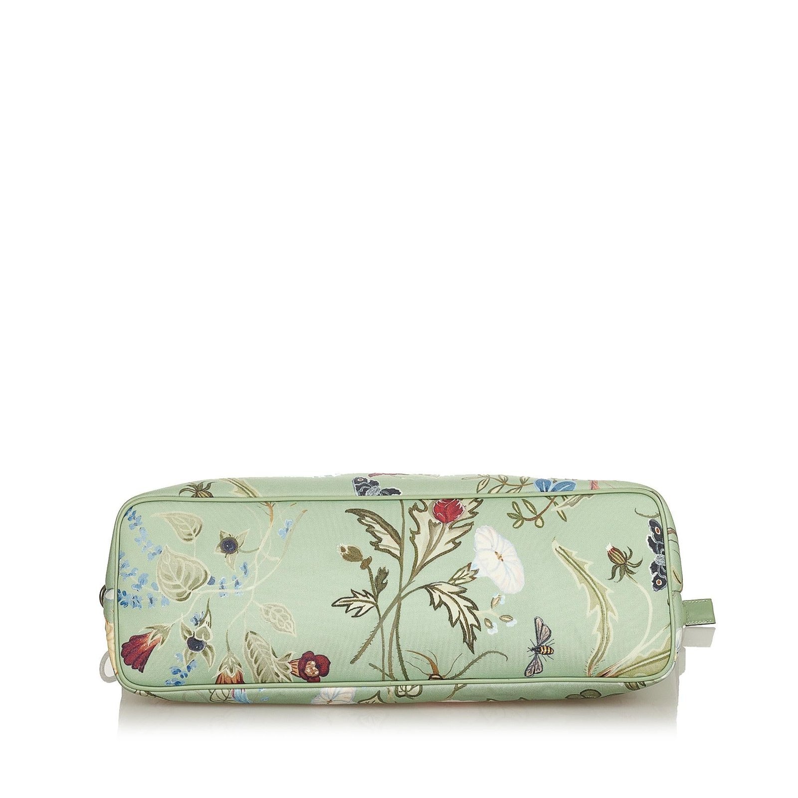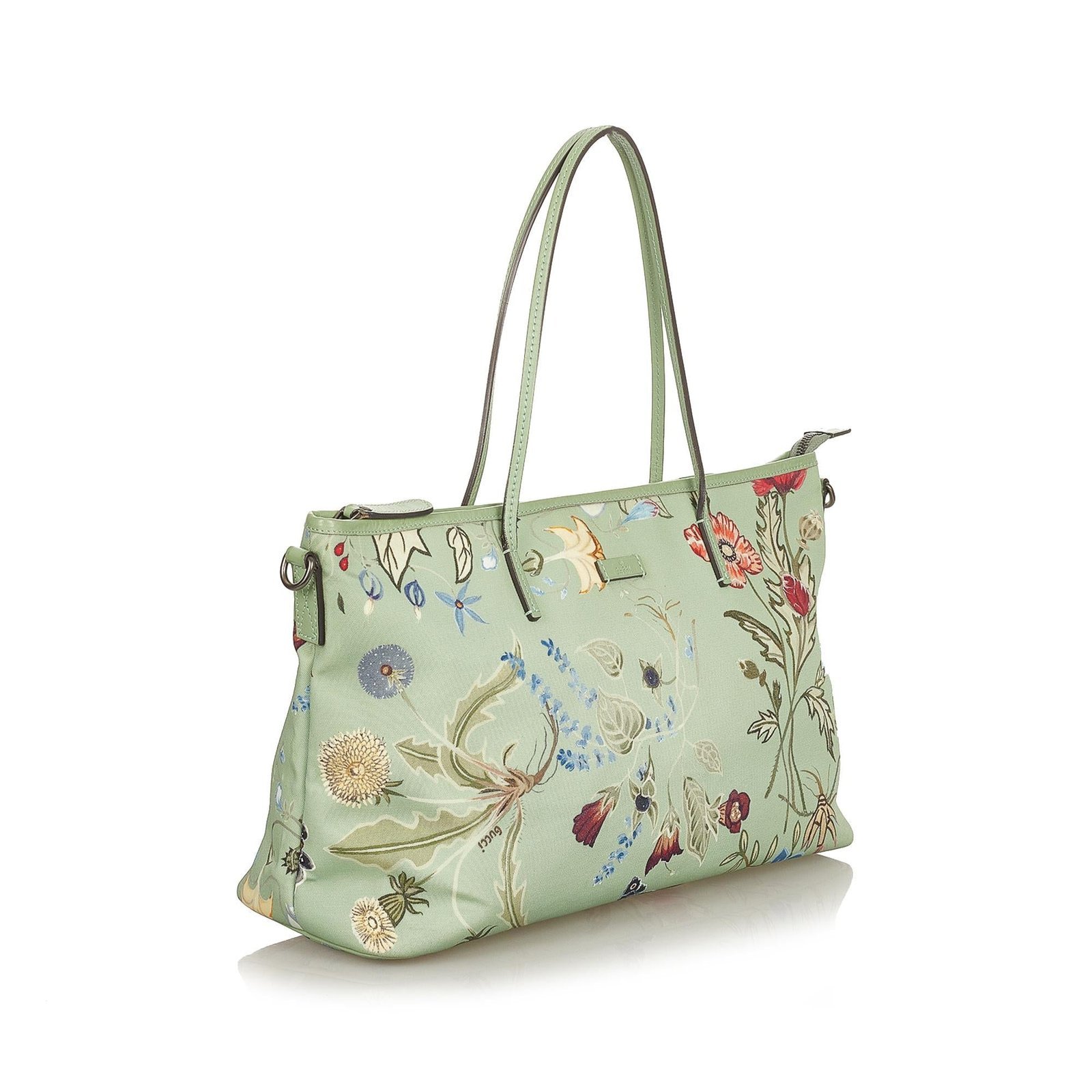 The Gucci Flora Knight Nylon Satchel is a bold and elegant accessory that blends functionality with artistic flair. Crafted from printed nylon with leather and calf accents, this satchel features a structured silhouette highlighted by flat leather handles and a detachable shoulder strap for versatile styling. The vibrant floral-inspired design adds a statement touch, while polished hardware enhances its refined appeal.