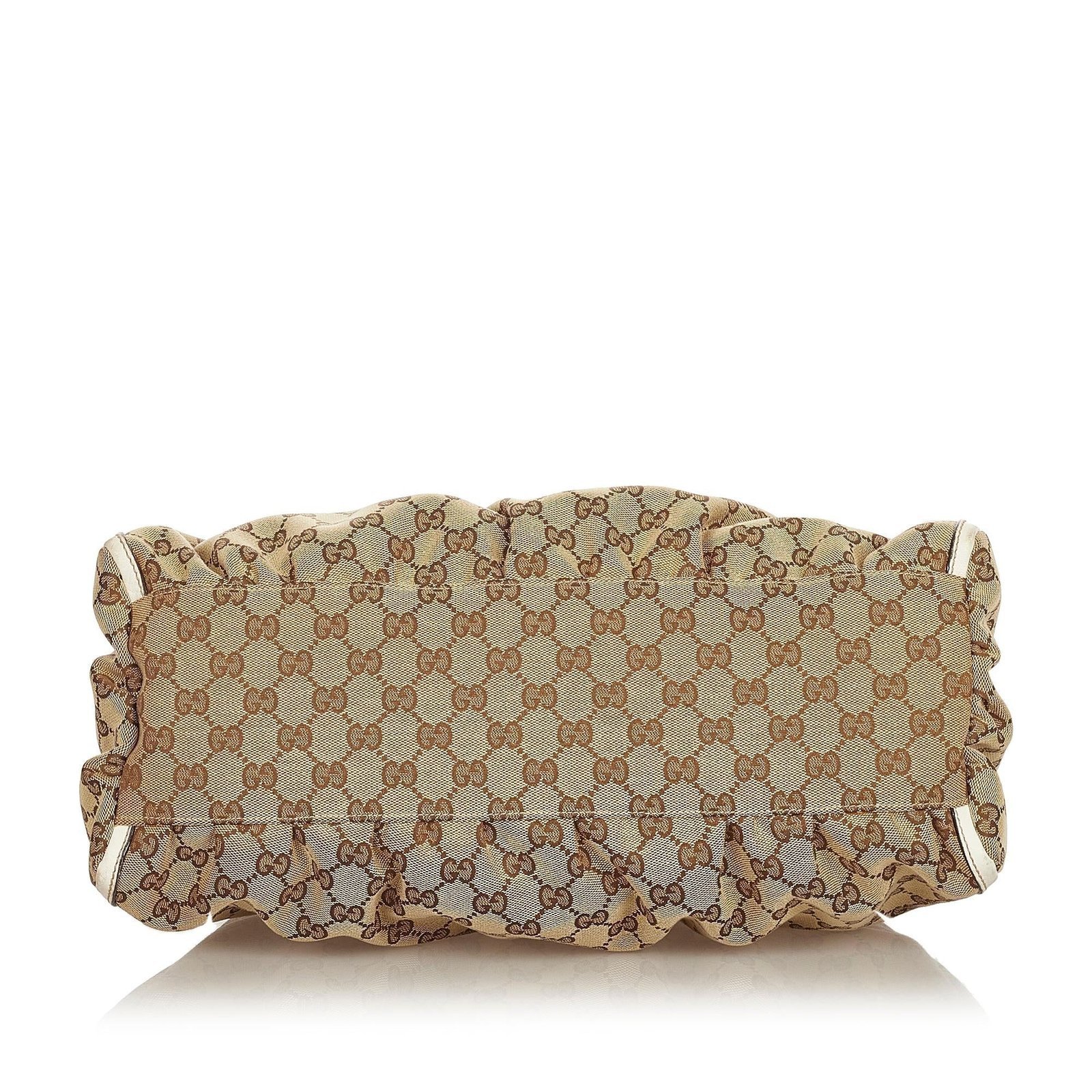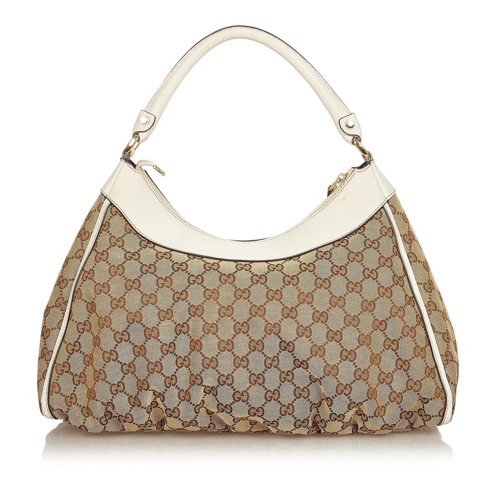 The Gucci GG Canvas Abbey D-Ring Shoulder Bag is a chic and sophisticated accessory that embodies the House’s timeless elegance. Crafted from beige GG canvas with leather trim, the bag features a structured silhouette that balances refined style with everyday practicality. Polished gold-tone hardware accents the design, while the spacious interior provides organized storage for all your essentials.