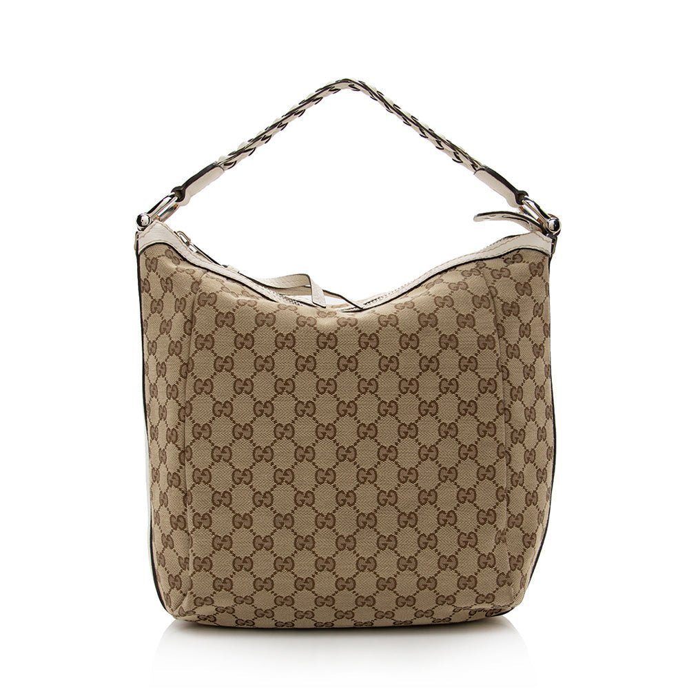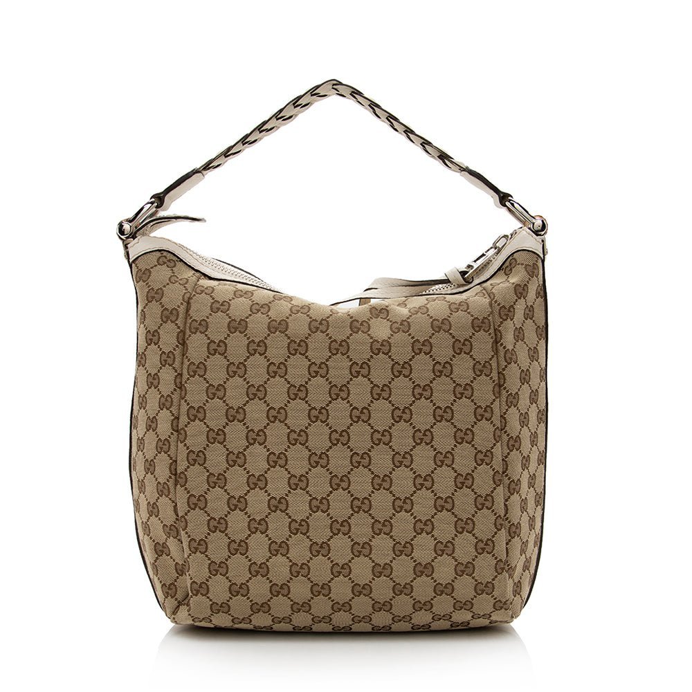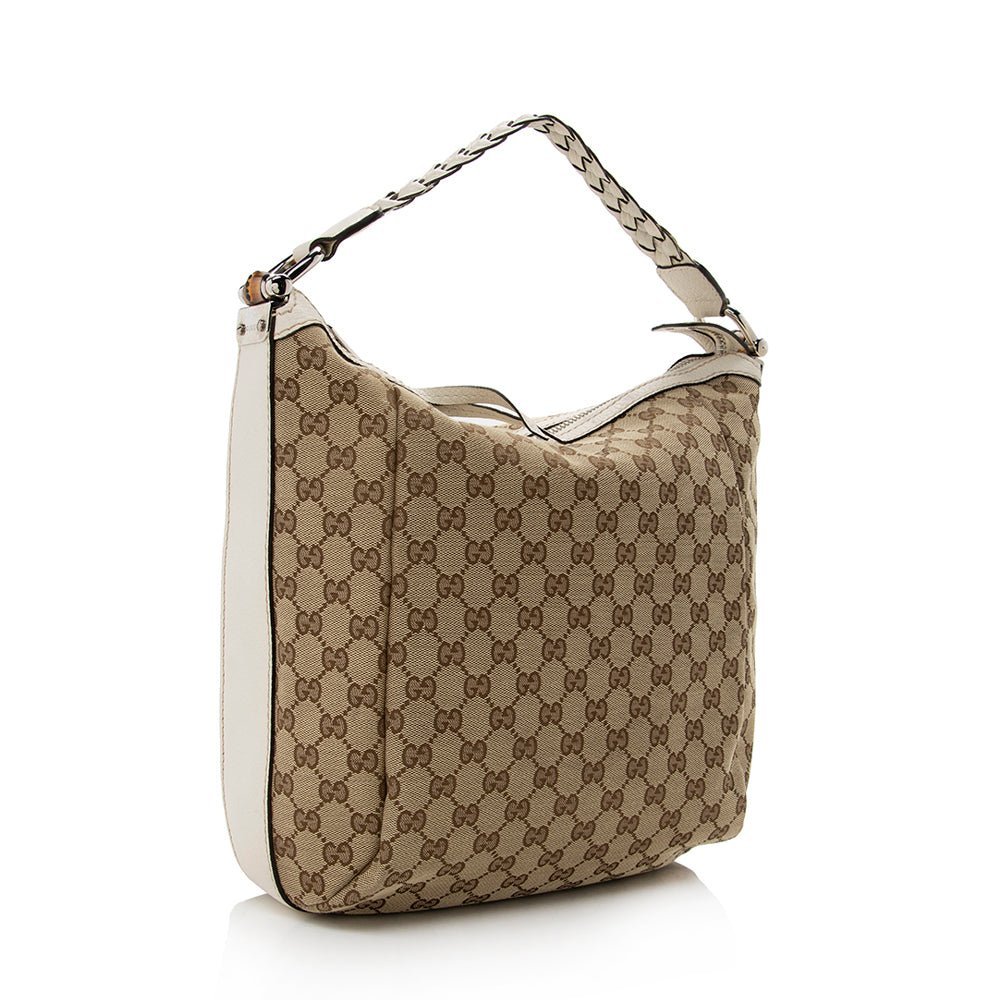 The Gucci GG Canvas Bamboo Bar Medium Hobo is a refined everyday bag that blends relaxed elegance with Gucci’s iconic heritage. Crafted from signature GG canvas in classic brown and beige tones, this hobo-style bag is accented with distinctive bamboo bar detailing, adding a timeless and recognizable finish.