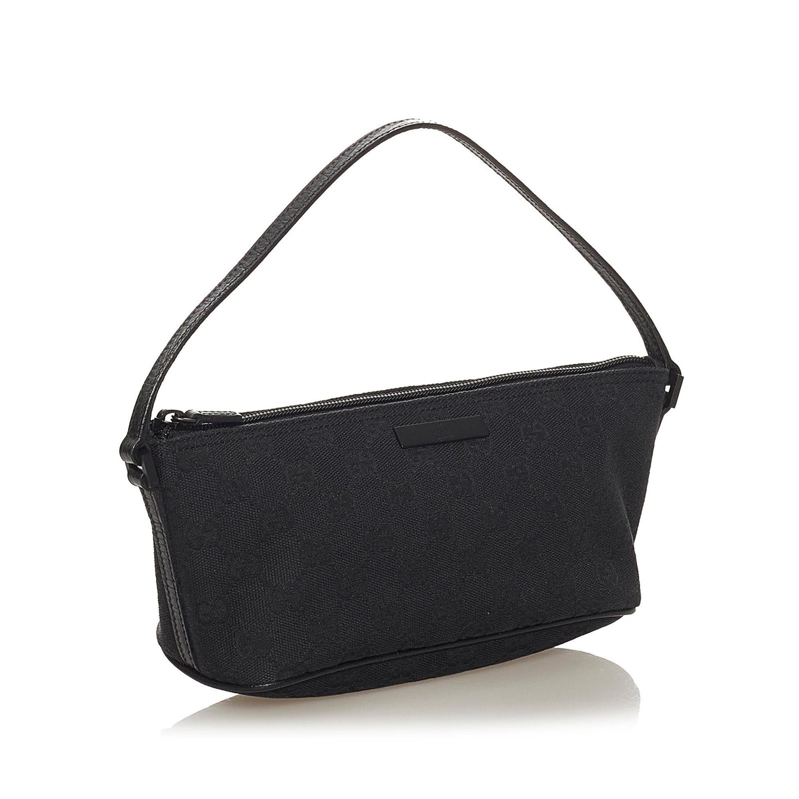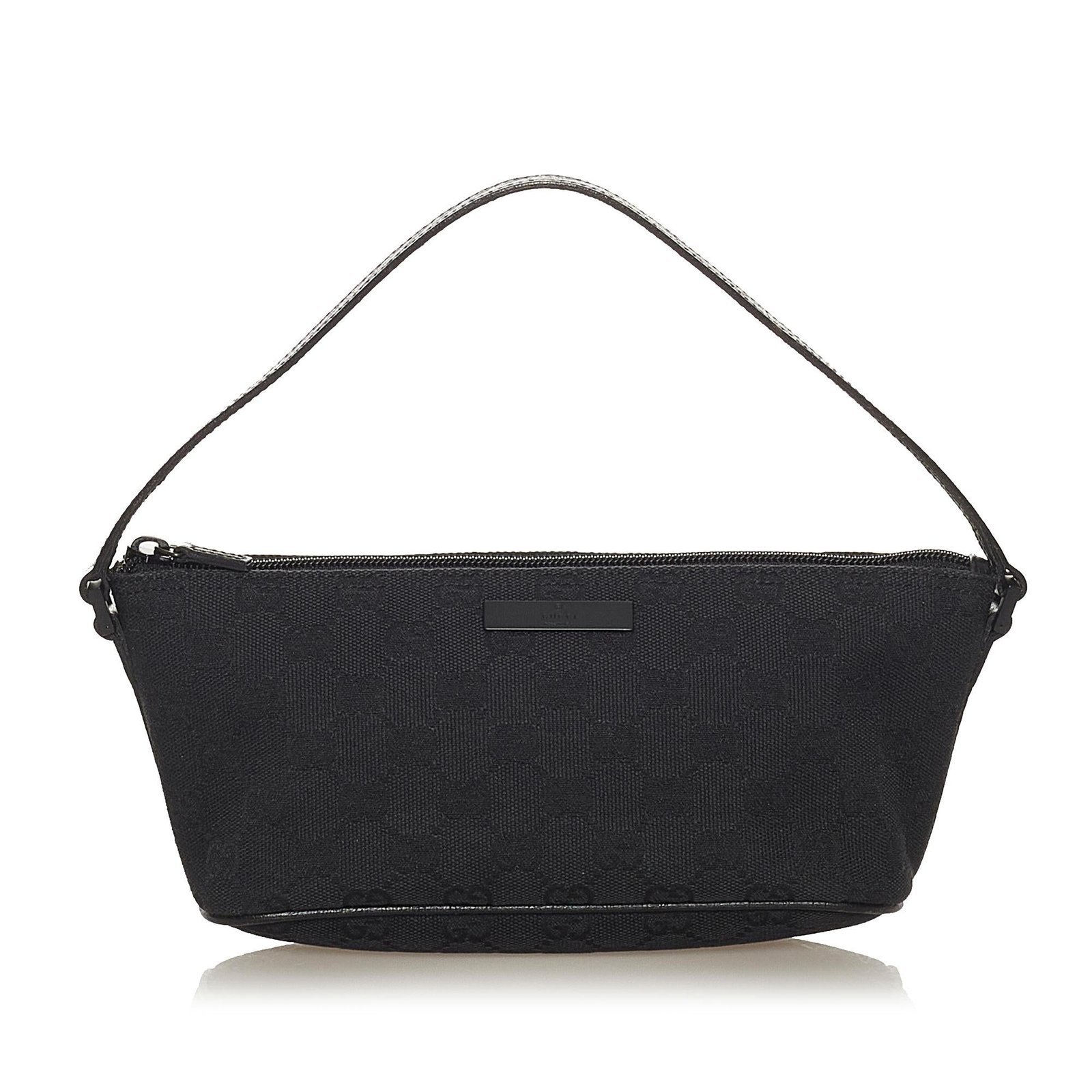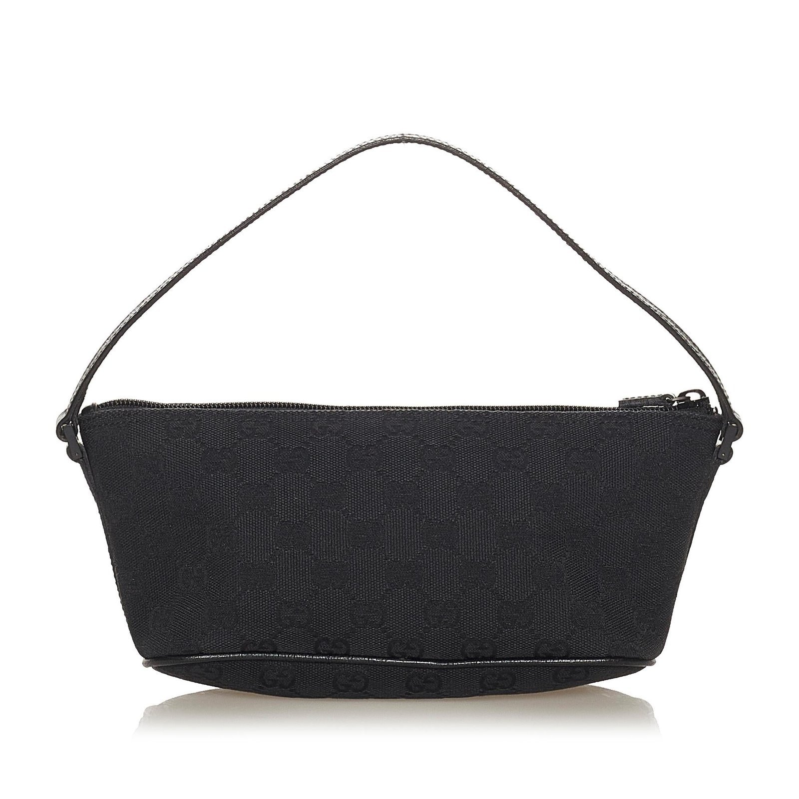 The Gucci GG Canvas Boat Baguette is a refined and versatile bag, crafted from GG canvas and smooth leather in a classic black hue. Its compact yet structured silhouette exudes understated elegance, making it a perfect accessory for both casual outings and sophisticated occasions. The top handle allows for comfortable hand-carry, while the interior is thoughtfully lined to keep your essentials organized and easily accessible.