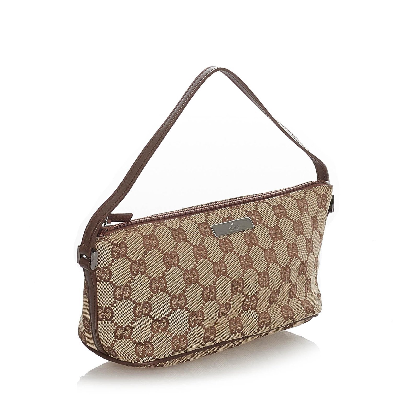 The Gucci GG Canvas Boat Baguette is a refined and versatile bag, crafted from GG canvas and smooth leather in a rich brown hue. Its compact yet structured silhouette exudes understated elegance, making it a perfect accessory for both casual outings and sophisticated occasions. The top handle allows for comfortable hand-carry, while the interior is thoughtfully lined to keep your essentials organized and easily accessible.
