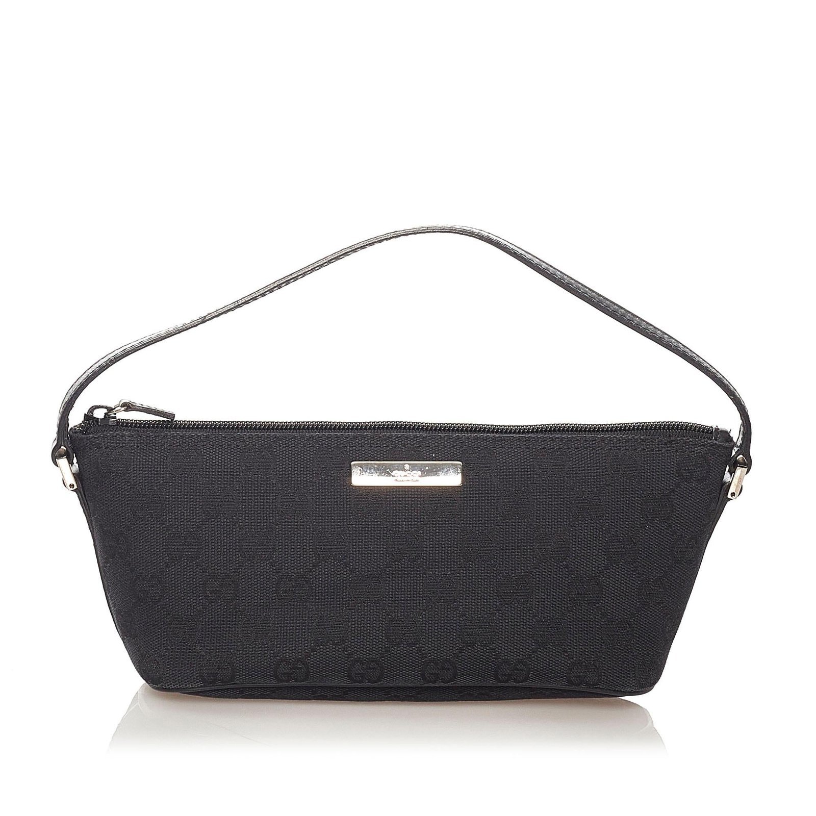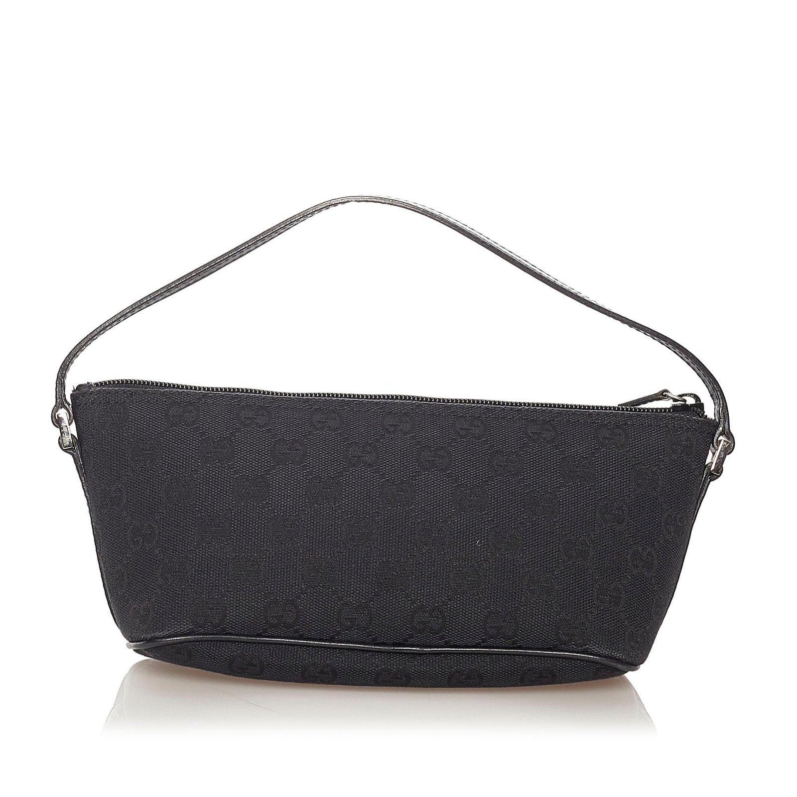 The Gucci GG Canvas Boat Baguette is a refined and versatile bag, crafted from GG canvas and smooth leather in a classic black hue. Its compact yet structured silhouette exudes understated elegance, making it a perfect accessory for both casual outings and sophisticated occasions. The top handle allows for comfortable hand-carry, while the interior is thoughtfully lined to keep your essentials organized and easily accessible.
