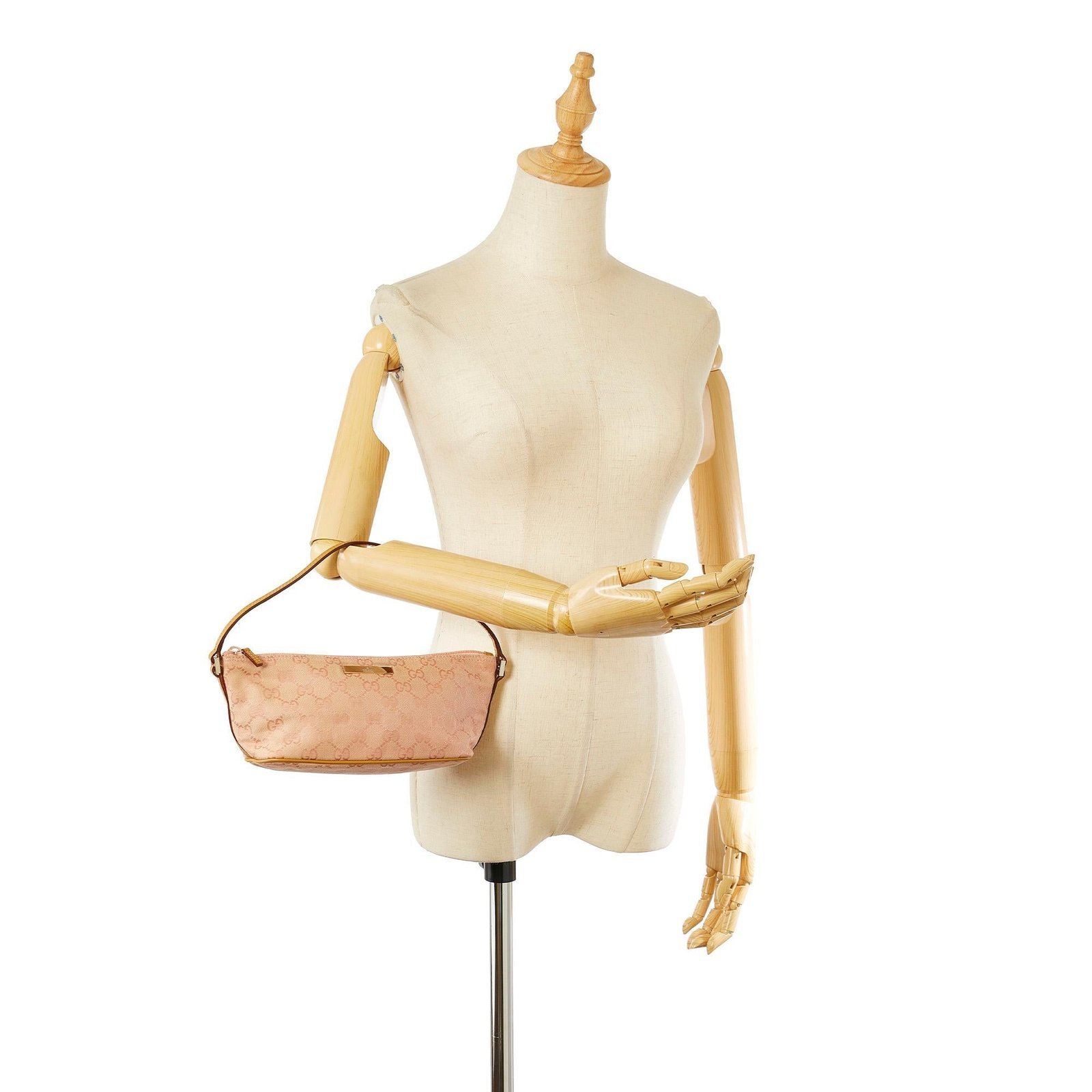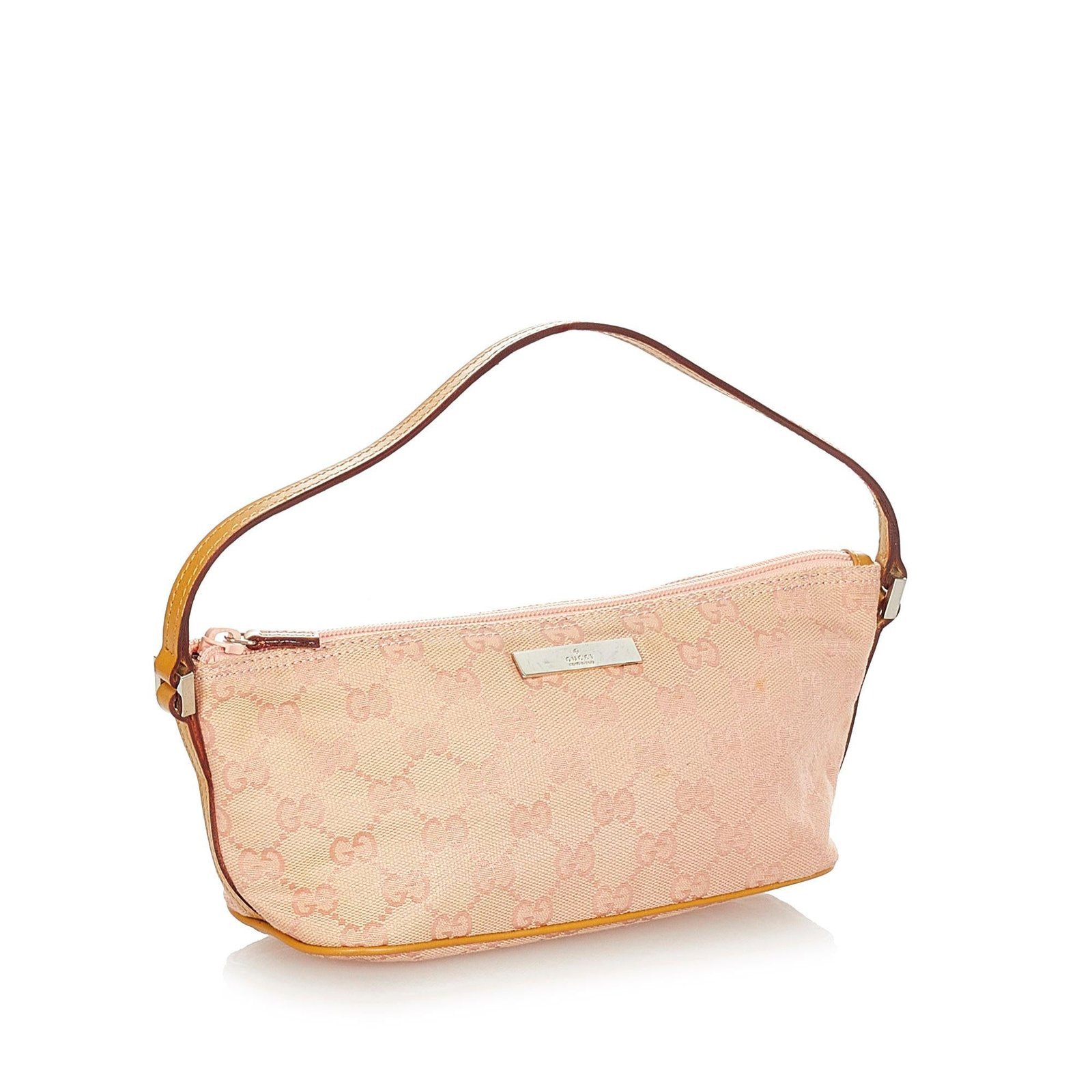 The Gucci GG Canvas Boat is a refined and versatile bag, crafted from GG canvas and smooth leather in a soft pink hue. Its compact yet structured silhouette exudes understated elegance, making it a perfect accessory for both casual outings and sophisticated occasions. The top handle allows for comfortable hand-carry, while the interior is thoughtfully lined to keep your essentials organized and easily accessible.