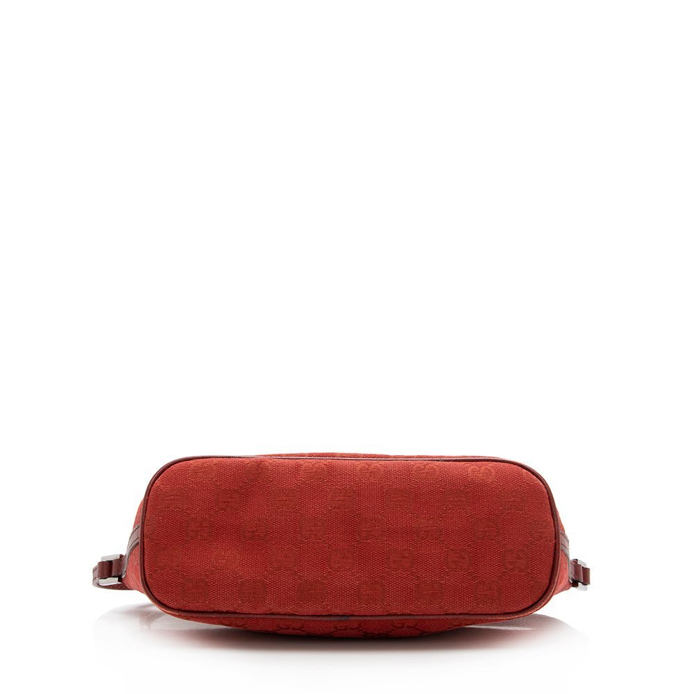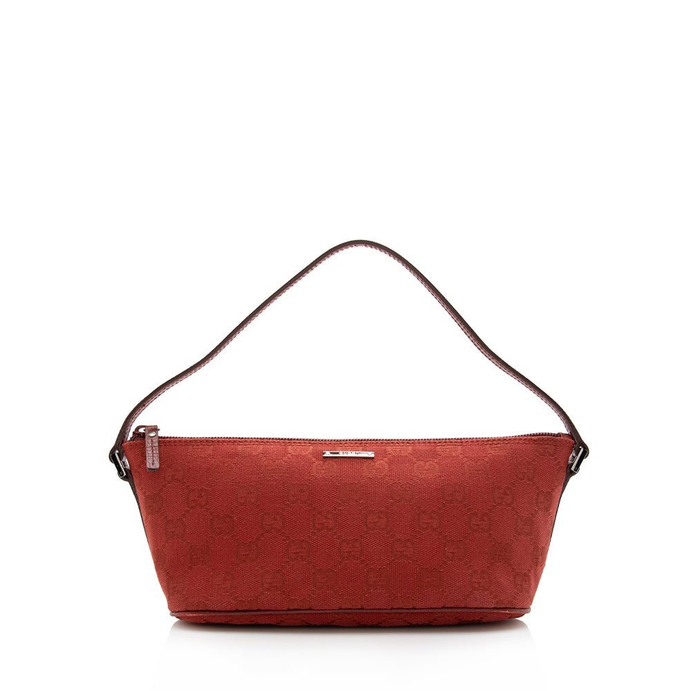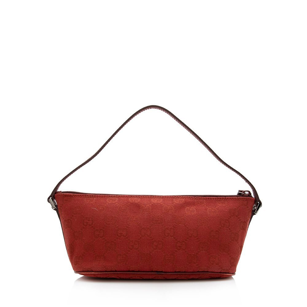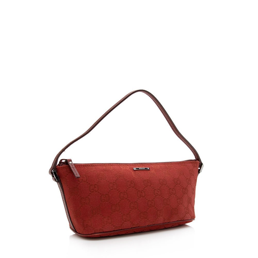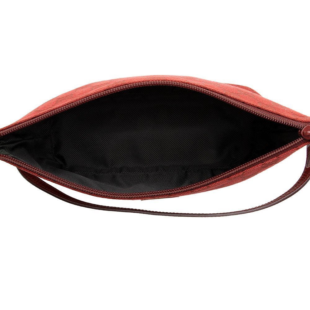 The Gucci GG Canvas Classic Pochette is a chic and versatile accessory, crafted from GG canvas and premium fabric in a vibrant red hue. Its compact, structured silhouette exudes timeless elegance while offering practical functionality for carrying essentials. The top handle allows comfortable hand-carry, and the interior is thoughtfully lined to keep belongings organized. Subtle gold-tone hardware accents add a refined finishing touch.