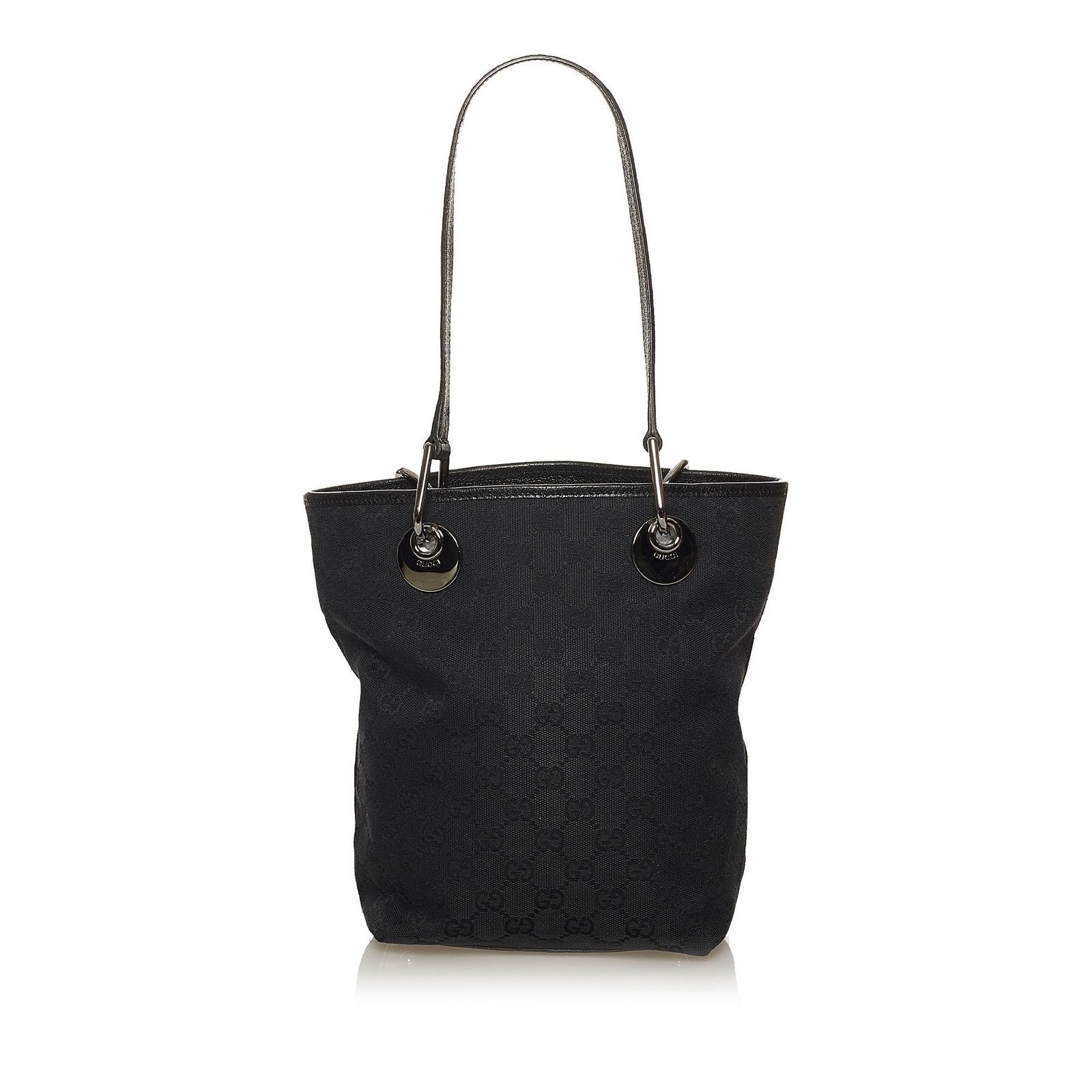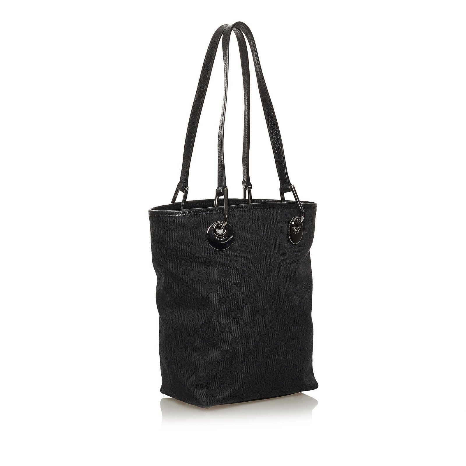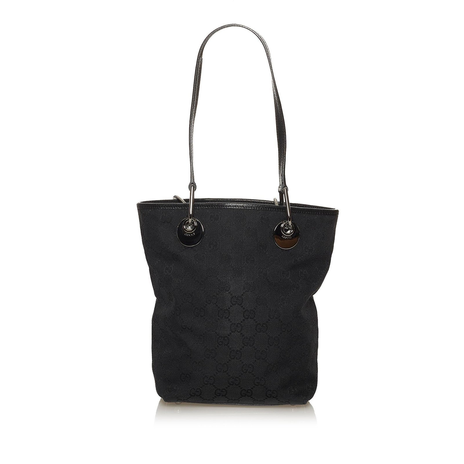 The Gucci GG Canvas Eclipse Shoulder Bag is a stylish and versatile accessory, crafted from GG canvas in a classic black hue. Its structured shoulder silhouette offers both elegance and practicality, featuring flat leather handles for comfortable hand or crook-of-arm carry. The interior is thoughtfully lined to keep essentials organized, while the spacious design allows you to carry daily necessities with ease. Subtle gold-tone hardware accents complete the refined look.