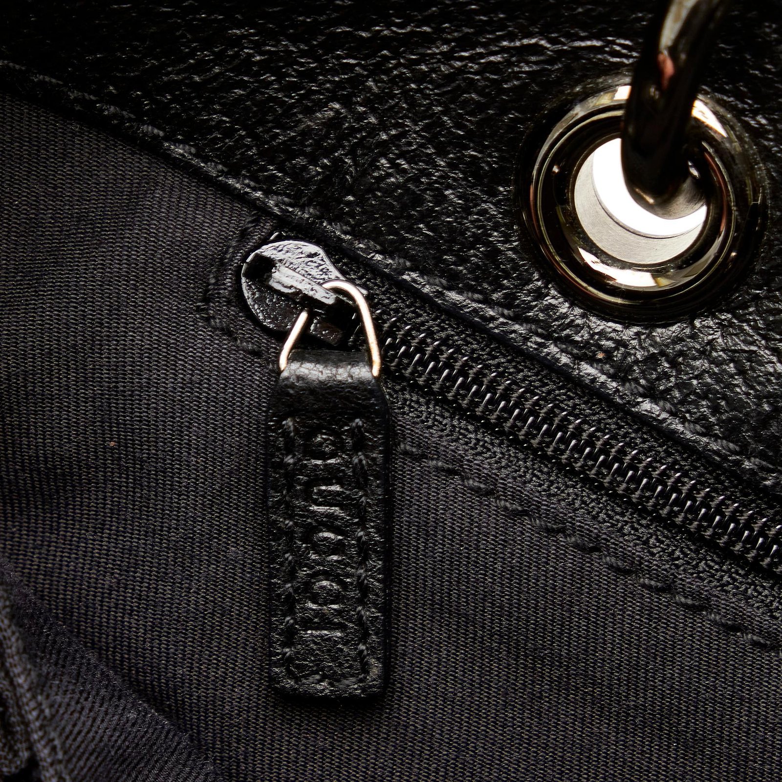 • Structured tote silhouette with flat leather straps and silver-tone hardware