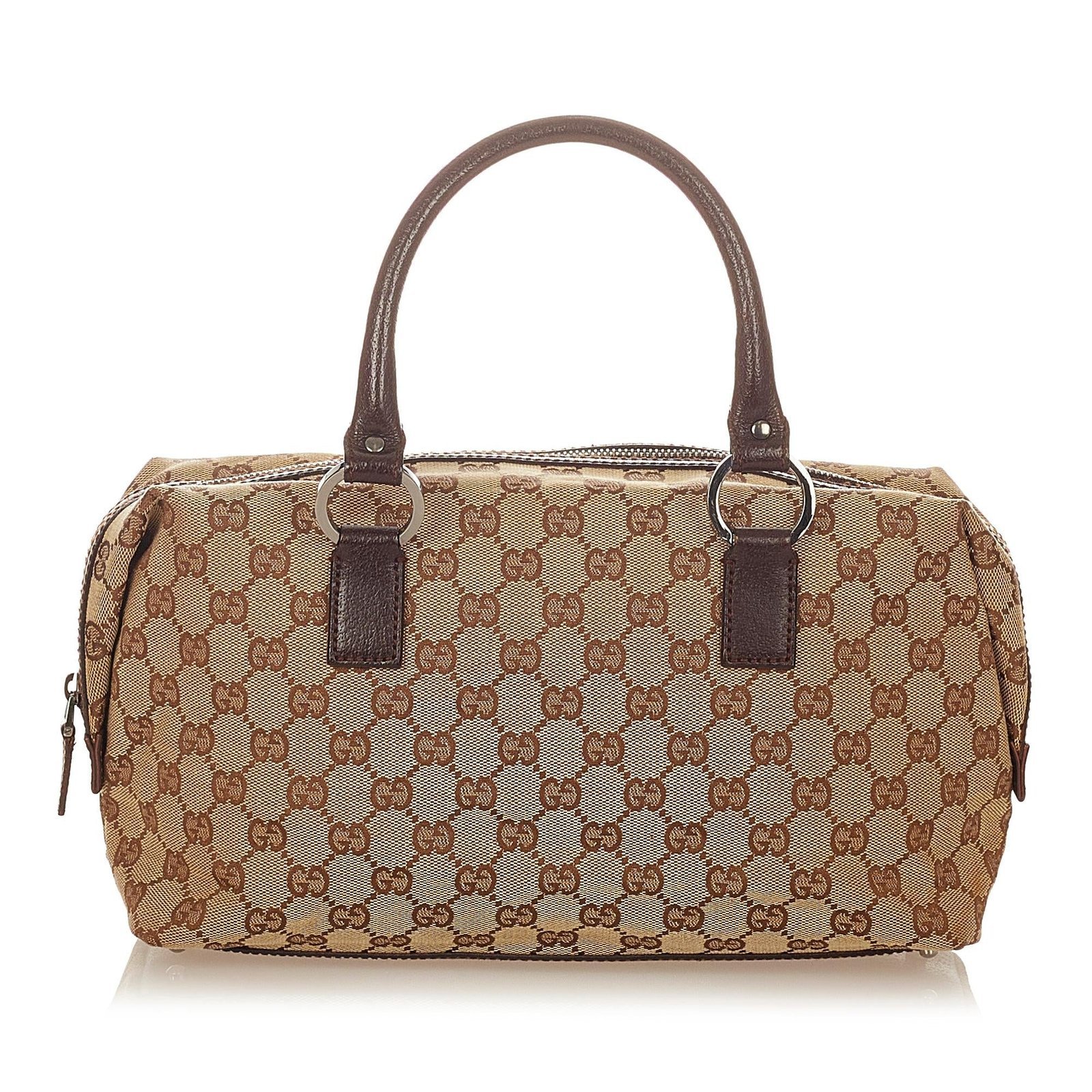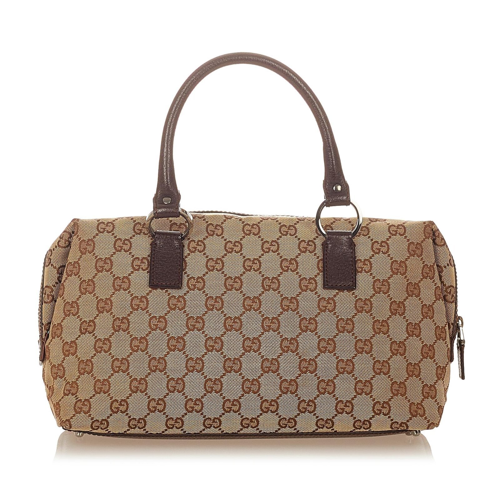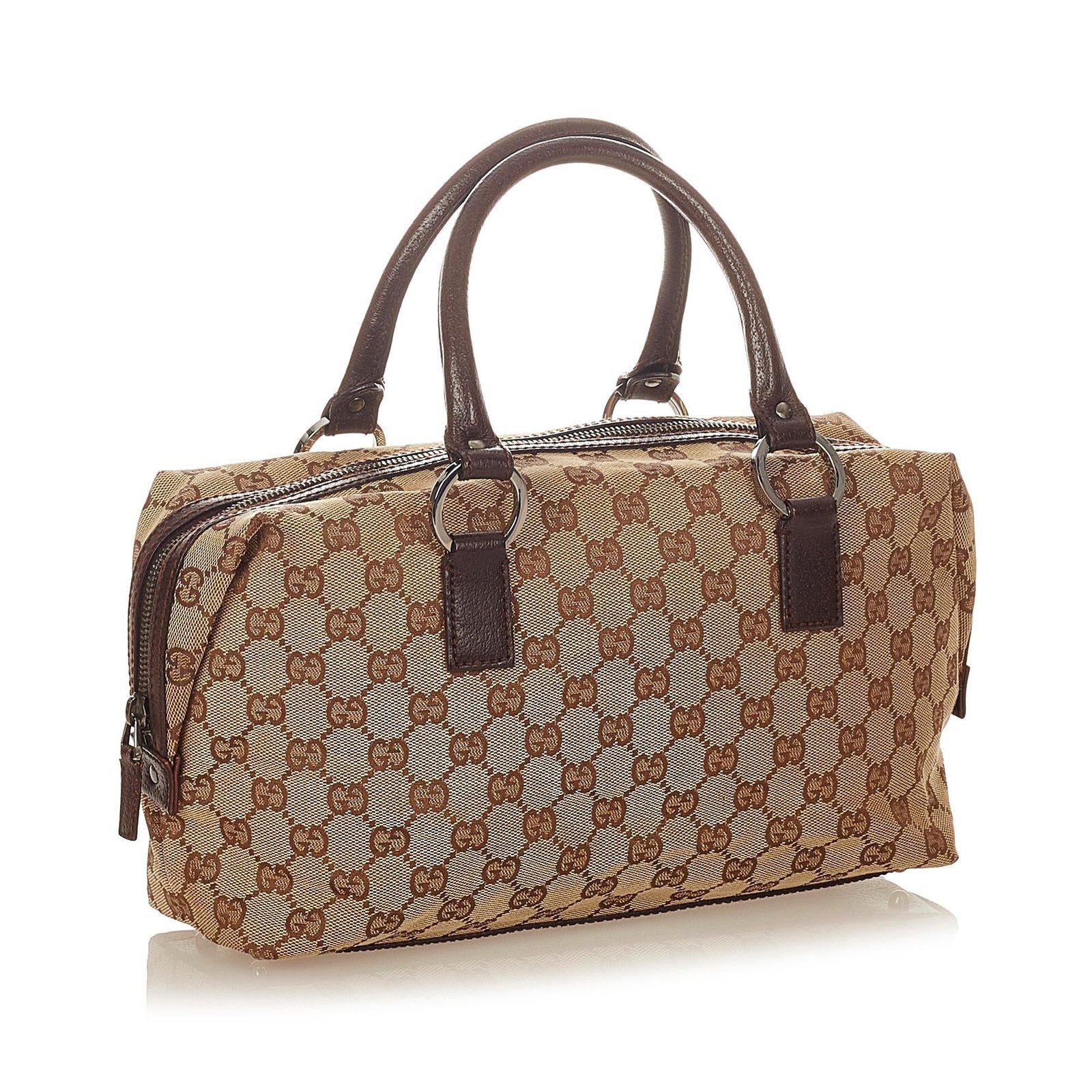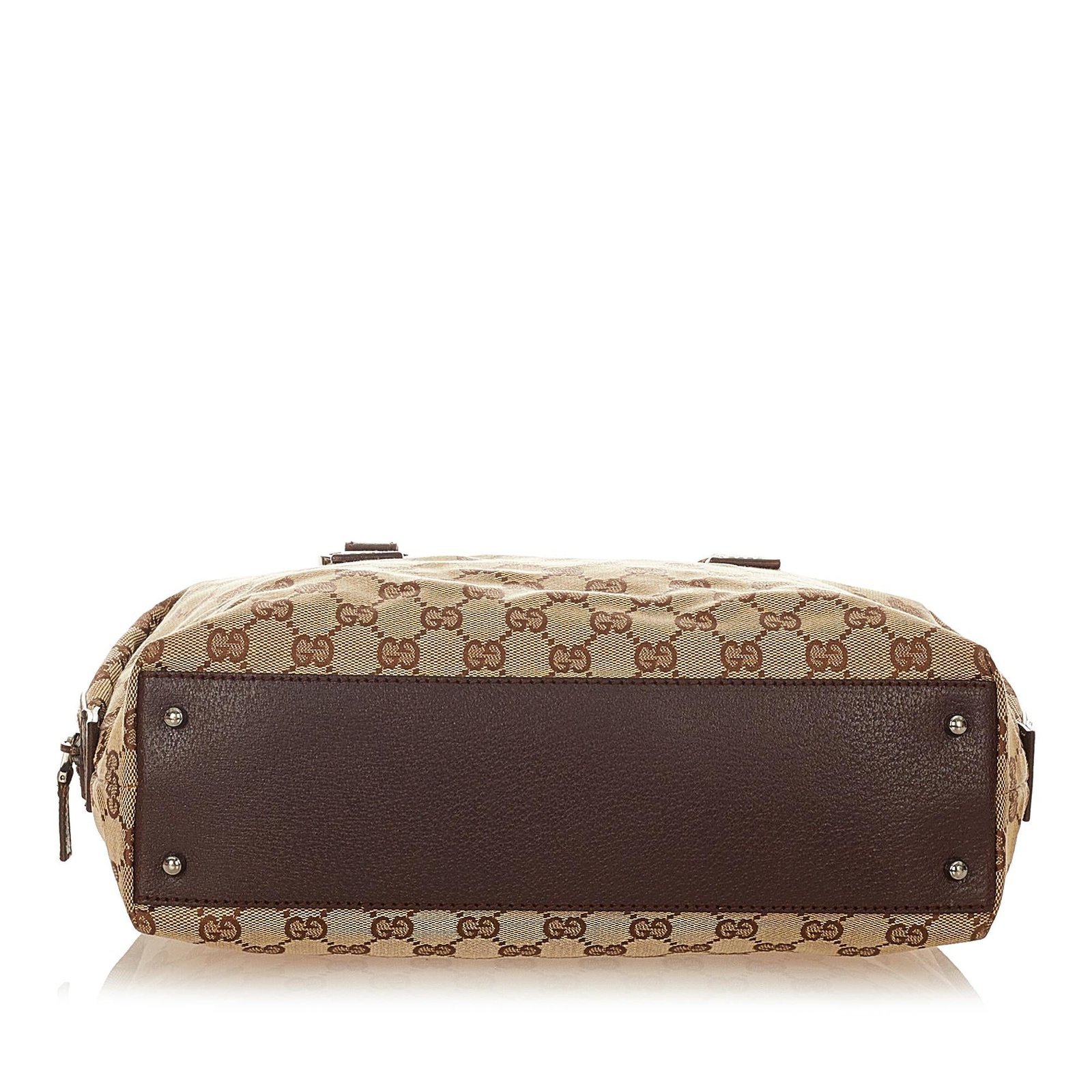The Gucci GG Canvas Handbag is a sophisticated and versatile tote, crafted from GG canvas, leather, and pony-style calfskin in a rich brown, beige, and dark brown palette. Its structured silhouette features rolled leather straps for comfortable hand or crook-of-arm carry, a top zip closure, and an interior zip pocket to keep essentials organized. Subtle stud detailing and fine hardware accents enhance the refined design, making it an elegant choice for everyday wear.