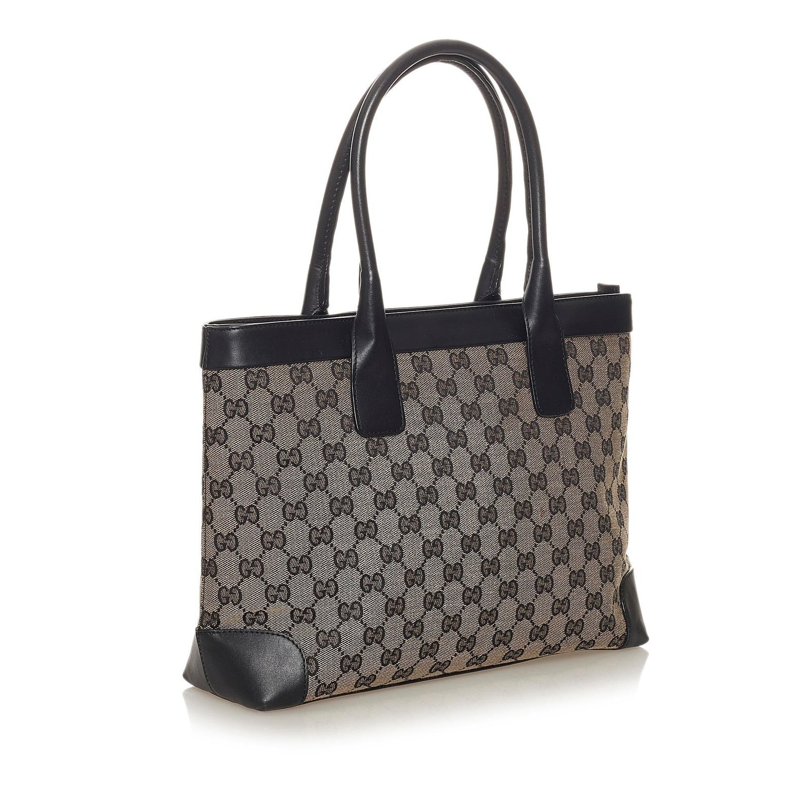 This Gucci GG Canvas Tote Bag is a timeless accessory crafted from GG canvas with leather trim in a rich brown tone. Designed for everyday elegance, it features a structured silhouette with comfortable top handles, an open-top design, and a spacious interior lined with fabric to organize your essentials. Subtle hardware accents highlight Gucci’s signature craftsmanship, combining luxury and practicality.