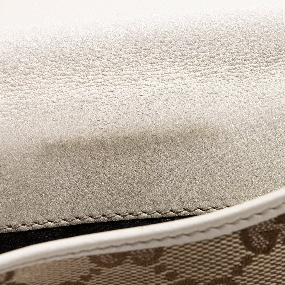 • GG canvas and leather construction with heart-flap design