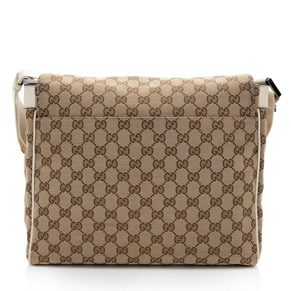 This Gucci messenger bag is crafted from signature GG canvas with smooth leather trim, combining both durability and timeless style. Designed for convenience and versatility, it features an adjustable flat shoulder strap with a leather shoulder guard for comfortable wear throughout the day.