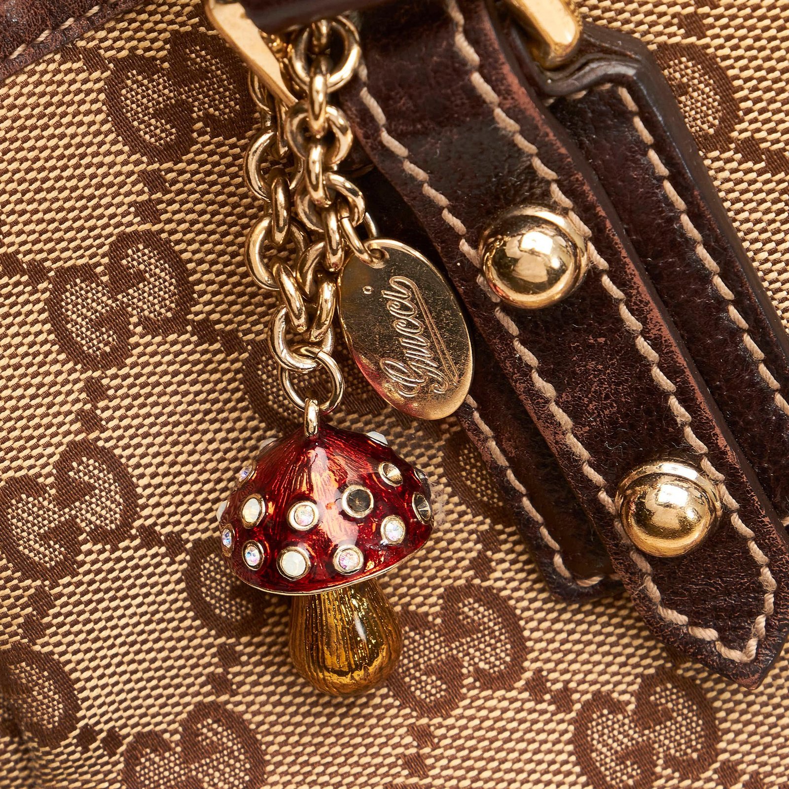 This playful Gucci tote bag is crafted from the brand’s signature GG canvas and adorned with colorful mushroom embroidery, making it a fun and stylish addition to any wardrobe. The bag features two leather top handles for comfortable carrying and a canvas-lined interior that offers practical space for daily essentials.