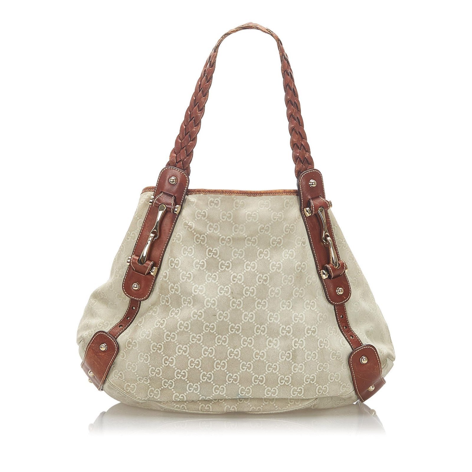 The Gucci GG Canvas Pelham Shoulder Bag exudes timeless sophistication and refined elegance. Crafted from signature GG canvas in a classic brown hue, it is accented with smooth leather trims, polished gold-tone hardware, and iconic horsebit detailing, reflecting Gucci’s rich heritage. The braided shoulder straps add a chic, stylish touch, while the snap closure opens to a fabric-lined interior with a zip pocket for organized essentials. Perfect for both day and evening wear, this shoulder bag combines practical functionality with Italian craftsmanship and luxurious design.