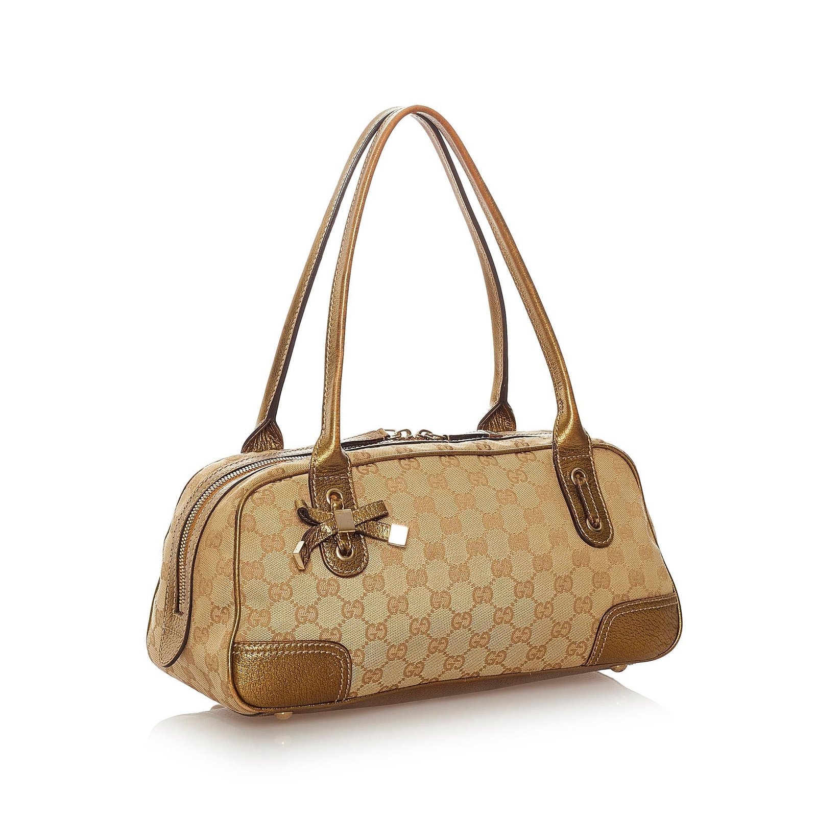 The Gucci GG Canvas Princy Shoulder Bag is a sophisticated and versatile accessory that exemplifies Gucci’s timeless elegance. Crafted from signature GG canvas with leather and calfskin accents in a refined gold tone, this shoulder bag features comfortable straps, polished hardware, and a secure zip closure. Its structured yet elegant silhouette makes it ideal for everyday wear or stylish outings, reflecting Gucci’s Italian craftsmanship and luxurious design.