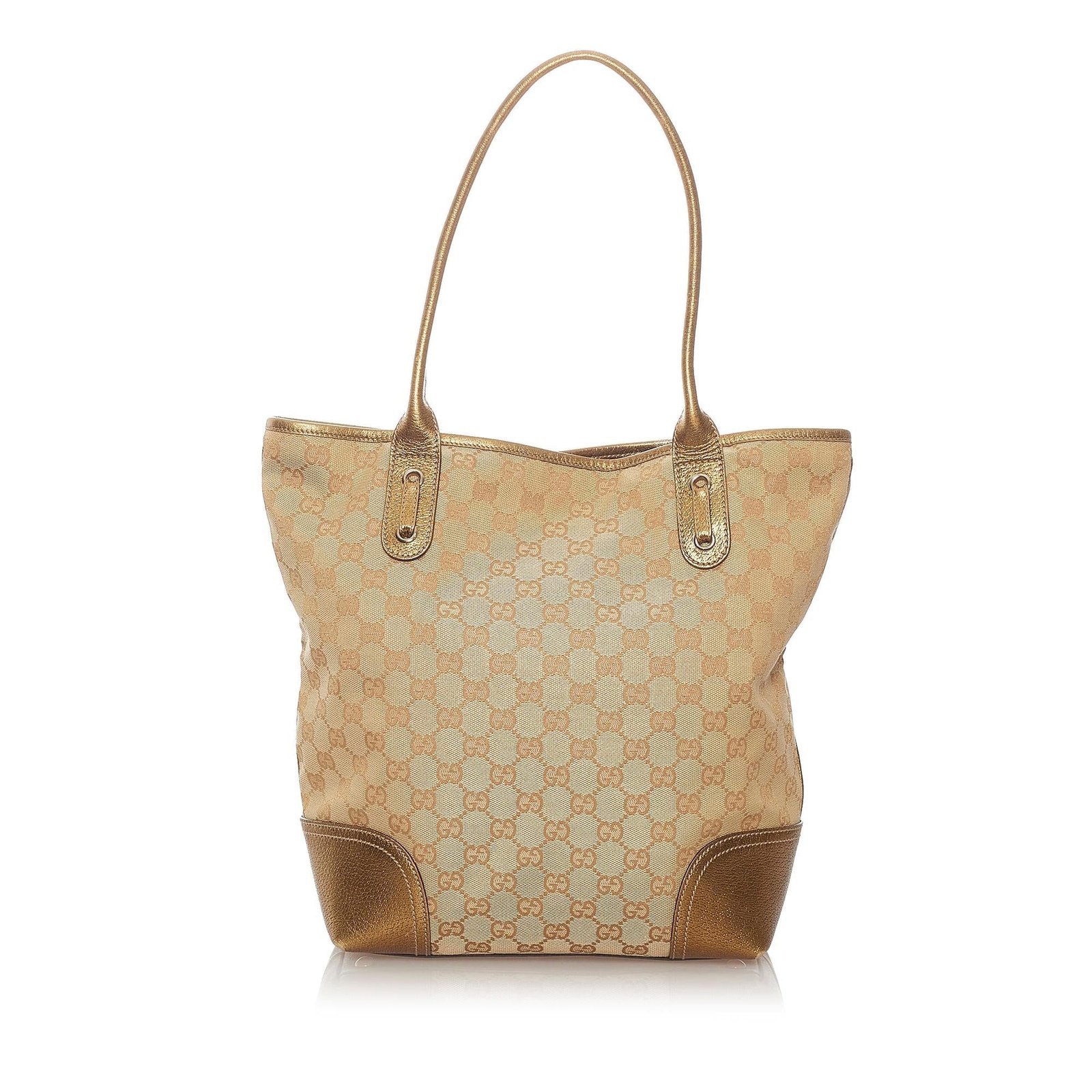 The Gucci GG Canvas Princy Tote Bag is a timeless and versatile accessory that embodies Gucci’s signature elegance. Crafted from premium canvas with leather trim in a sophisticated brown and beige combination with gold accents, this tote features rolled leather handles, an open top with a magnetic snap closure, and interior zip and slip pockets for organized essentials. Its structured yet elegant silhouette makes it perfect for everyday wear or refined outings, reflecting Gucci’s Italian craftsmanship and luxurious design.