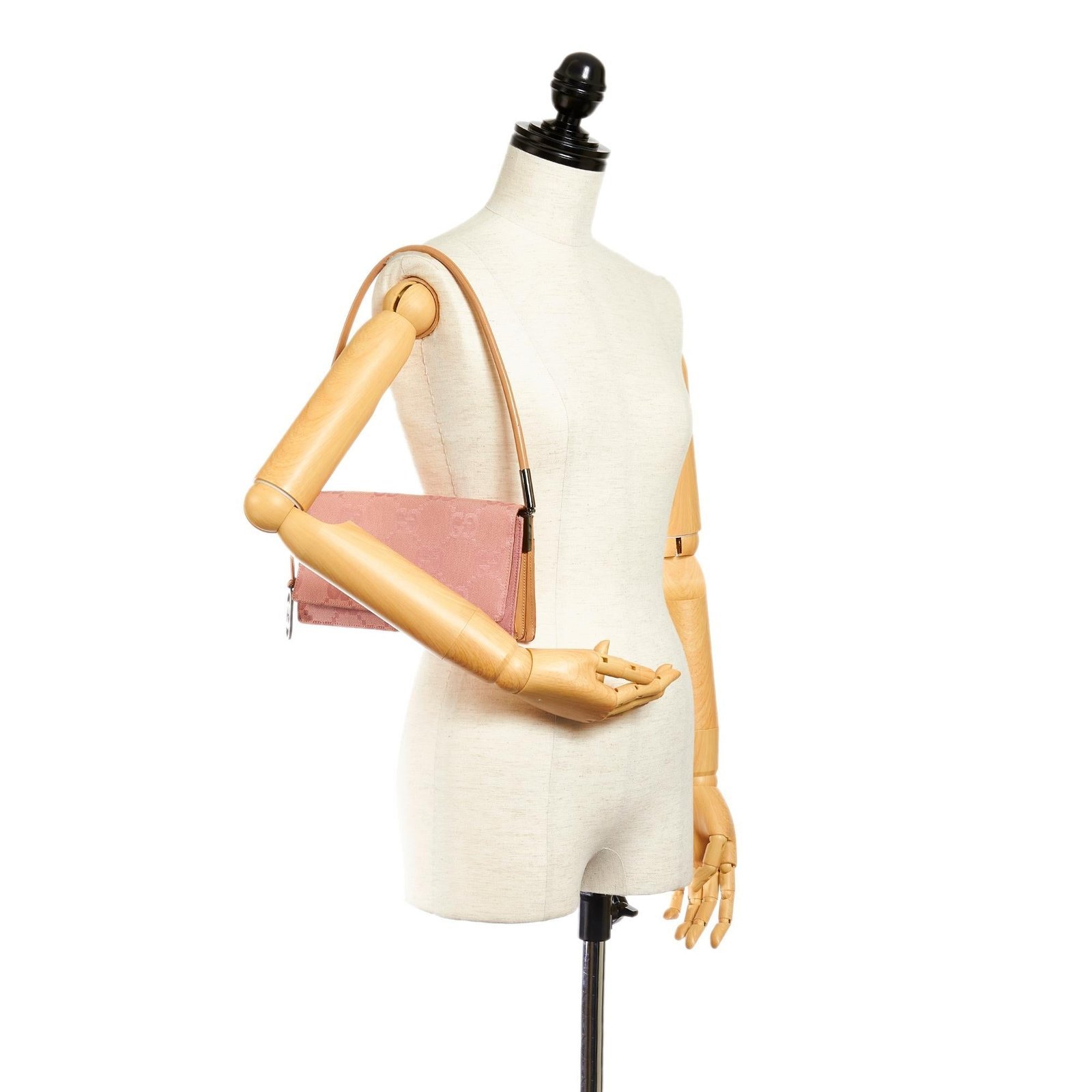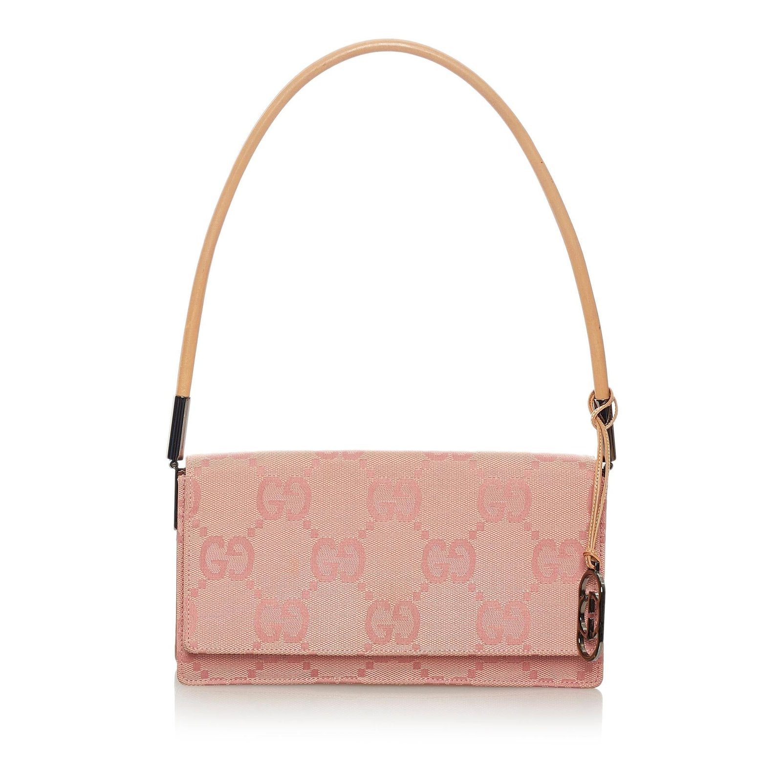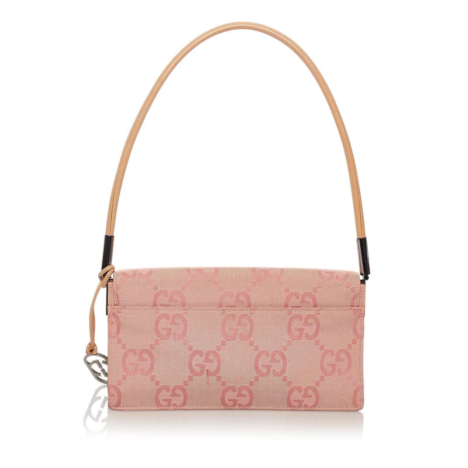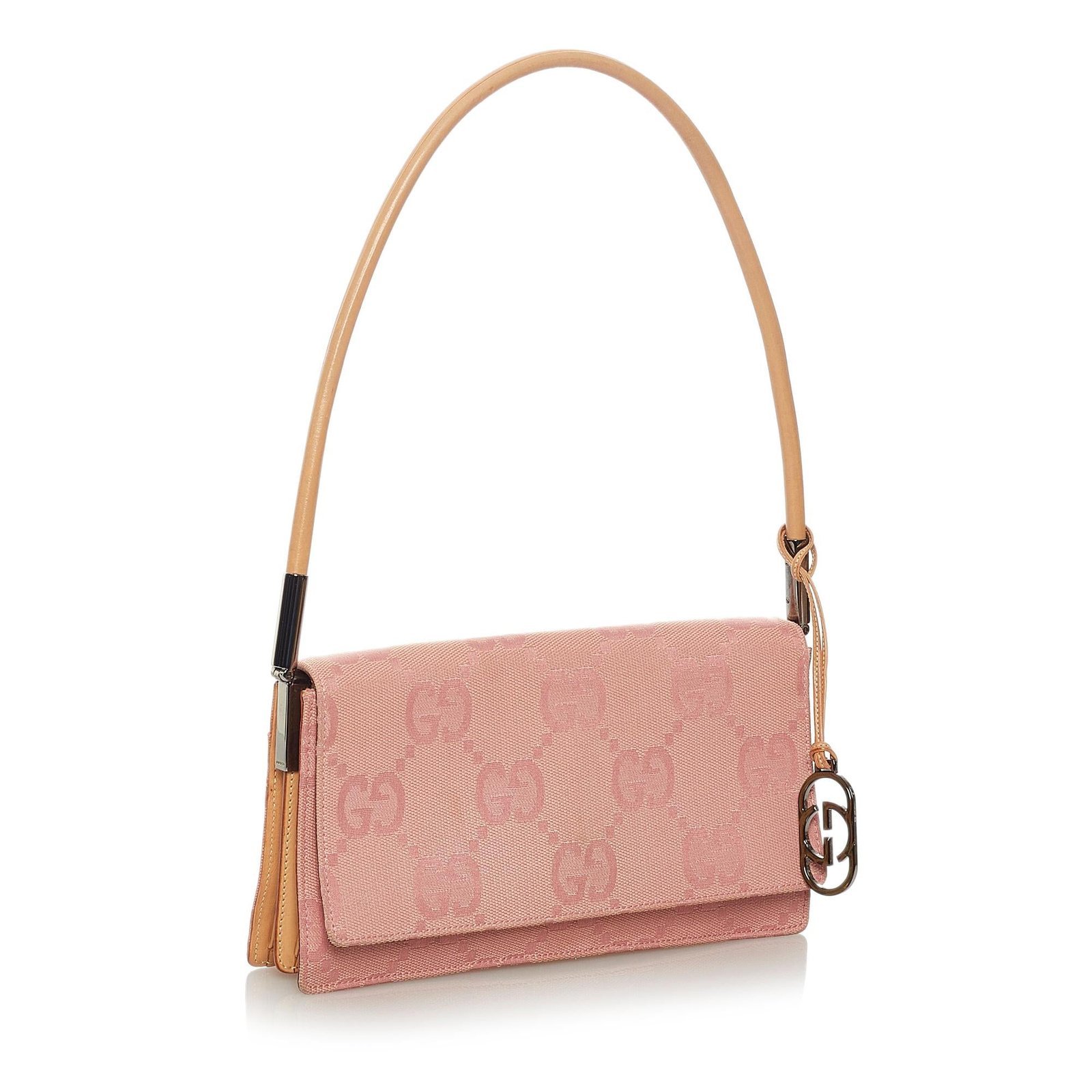 The Gucci GG Canvas Shoulder Bag is a chic and versatile accessory that reflects Gucci’s iconic design and Italian craftsmanship. Crafted from signature GG canvas in soft pink tones with leather and calfskin accents, this shoulder bag features a sleek silhouette for stylish everyday wear. The flat leather shoulder strap provides comfortable carry, while the top zip closure opens to a well organized interior with a zip pocket for convenience. Elegant and functional, this piece embodies understated luxury.