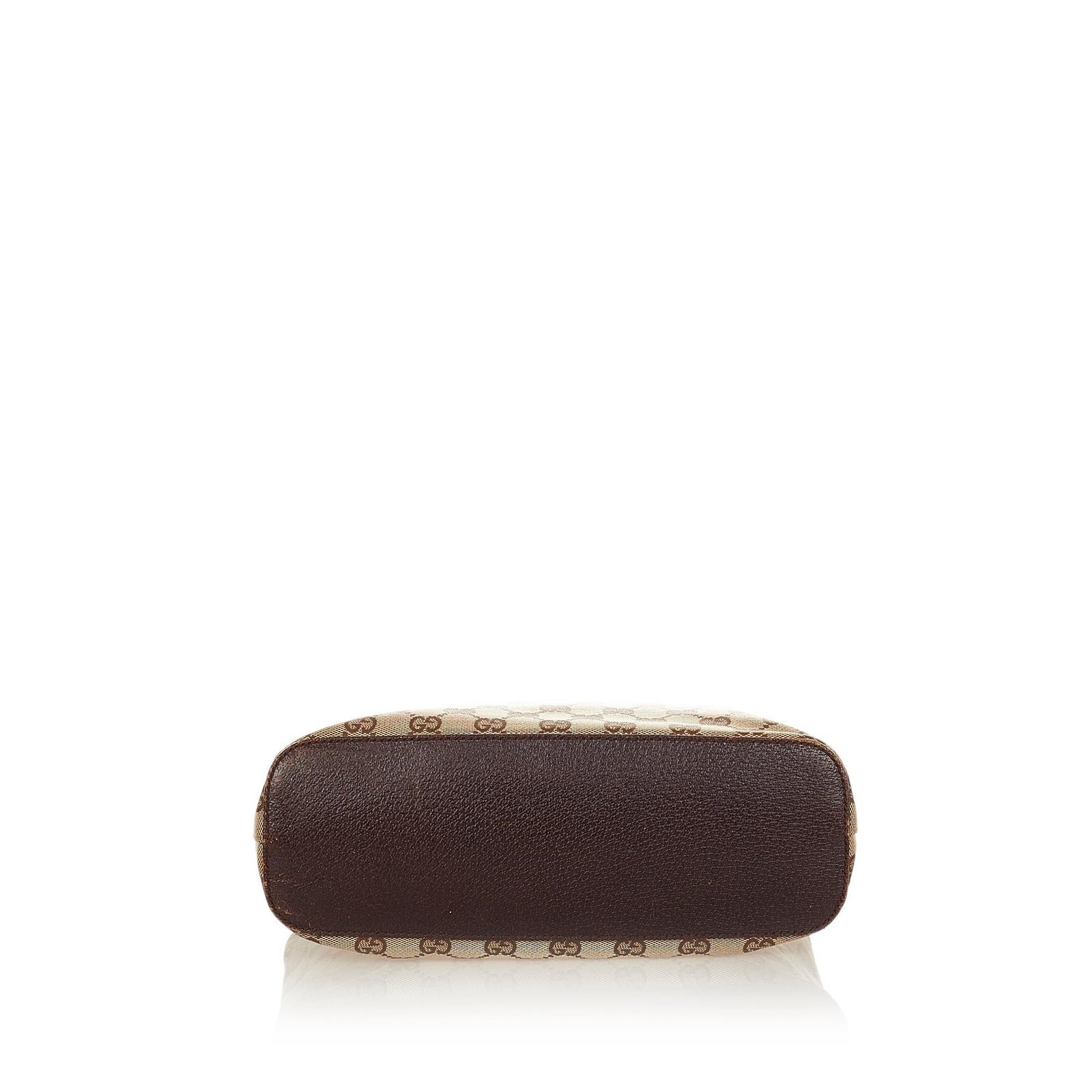 - Signature GG canvas exterior in brown, beige, and dark brown tones with leather and calfskin accents