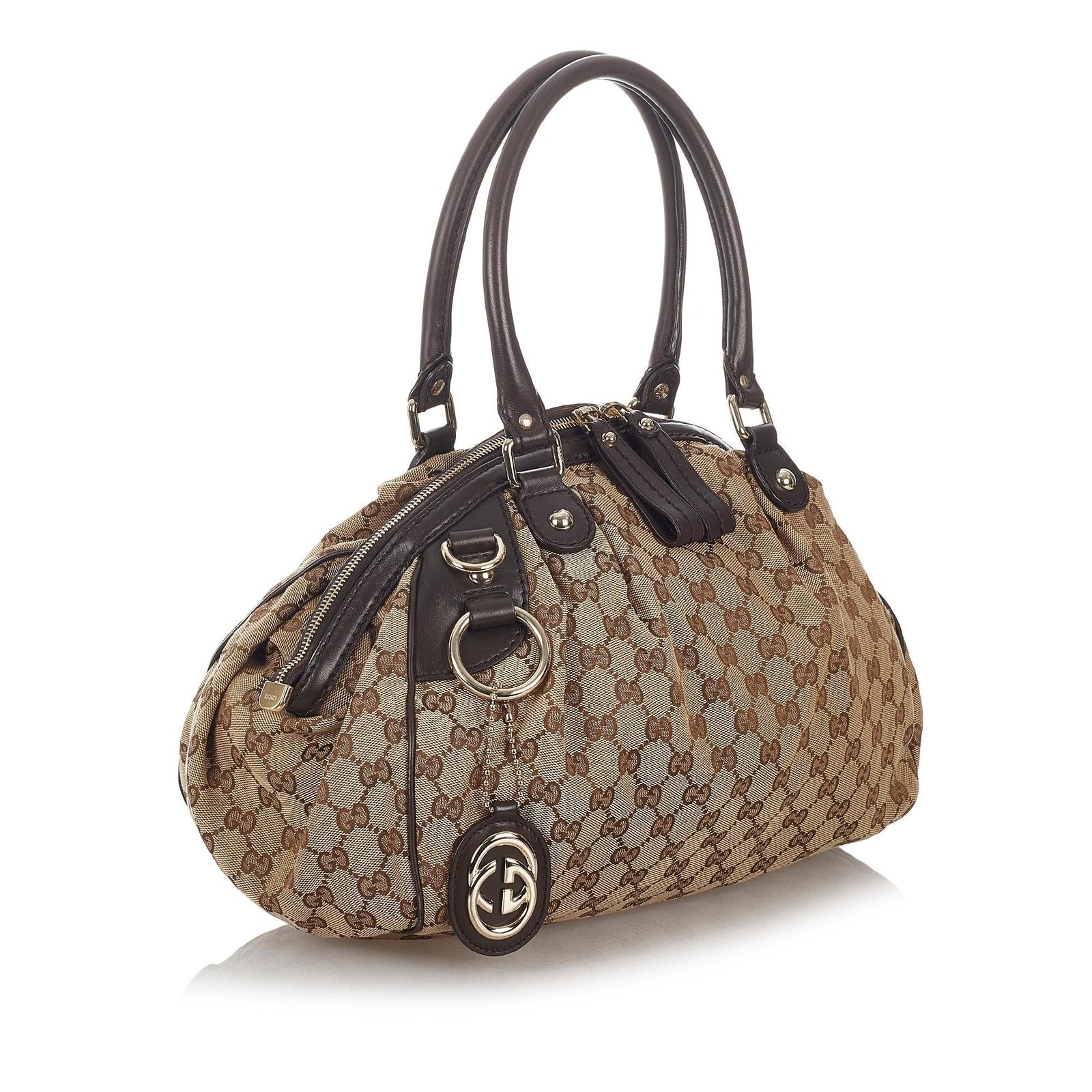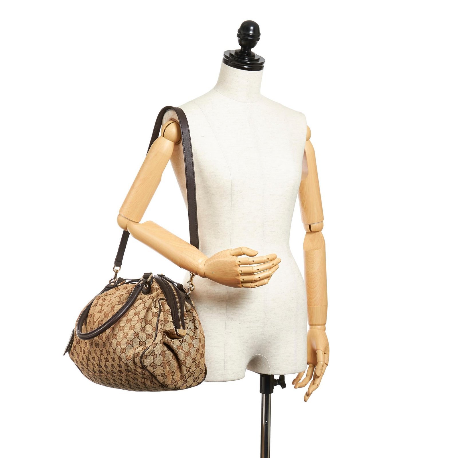 The Gucci GG Canvas Sukey Satchel is a stylish and versatile bag that exemplifies Gucci’s iconic design and Italian craftsmanship. Crafted from signature GG canvas in elegant black and brown tones, this satchel features a structured yet relaxed silhouette with a comfortable shoulder strap for effortless carry. The top zip closure opens to a well organized interior, offering practical storage while maintaining a polished and sophisticated look.